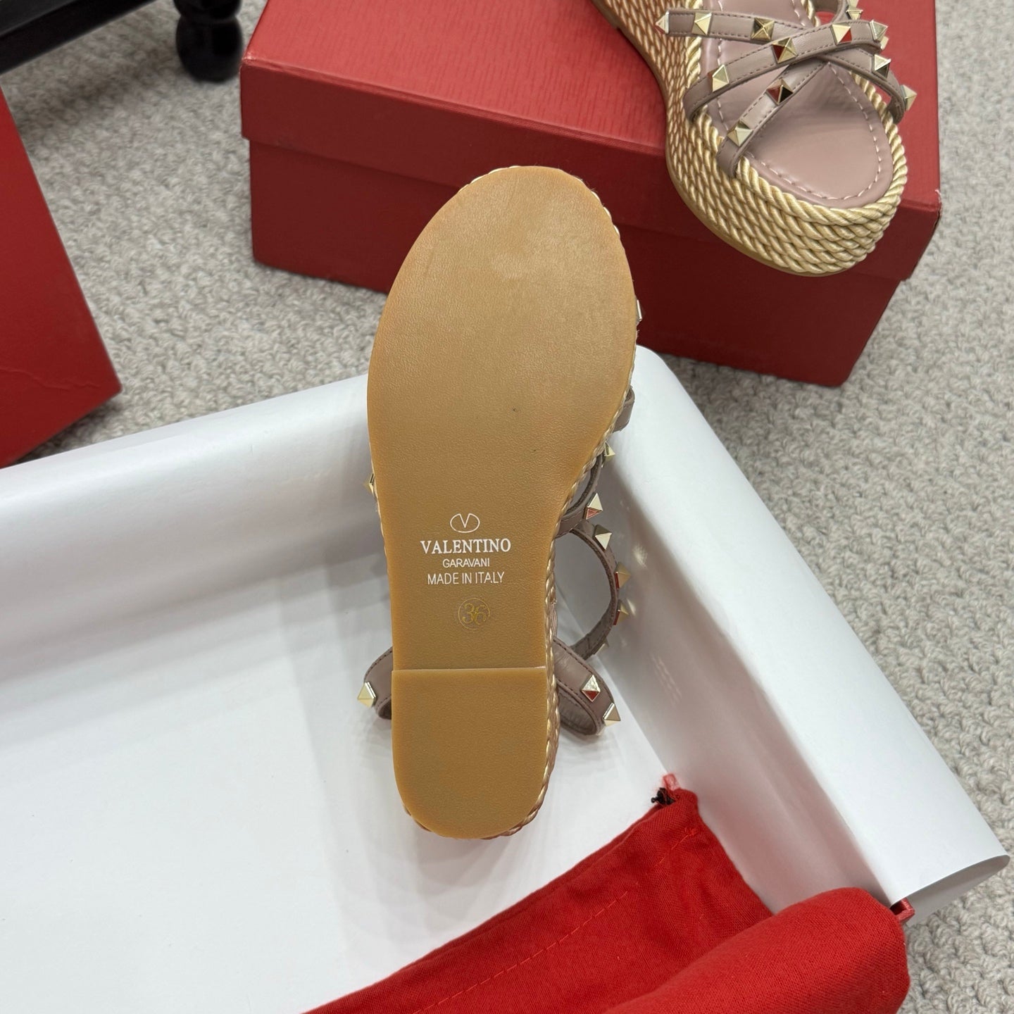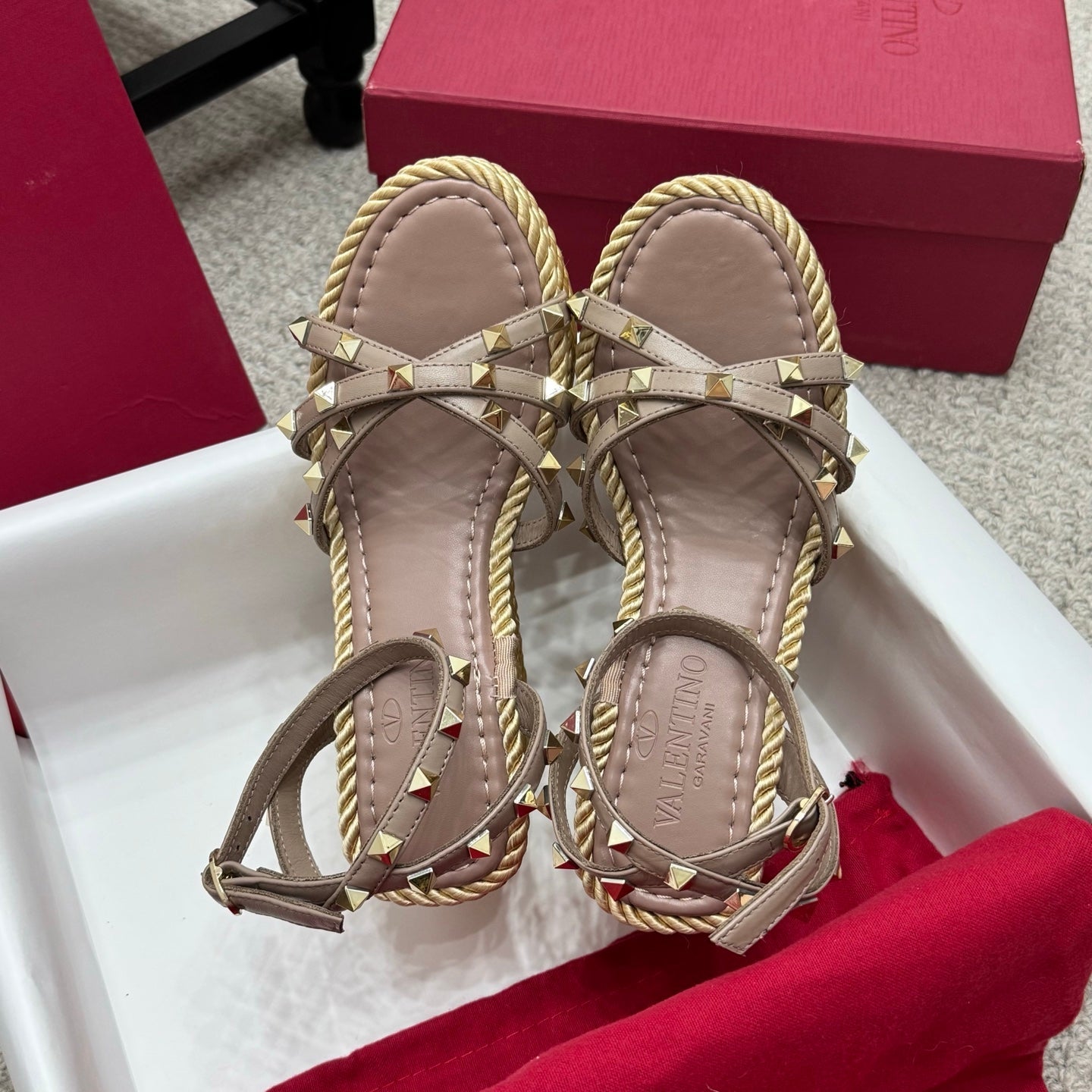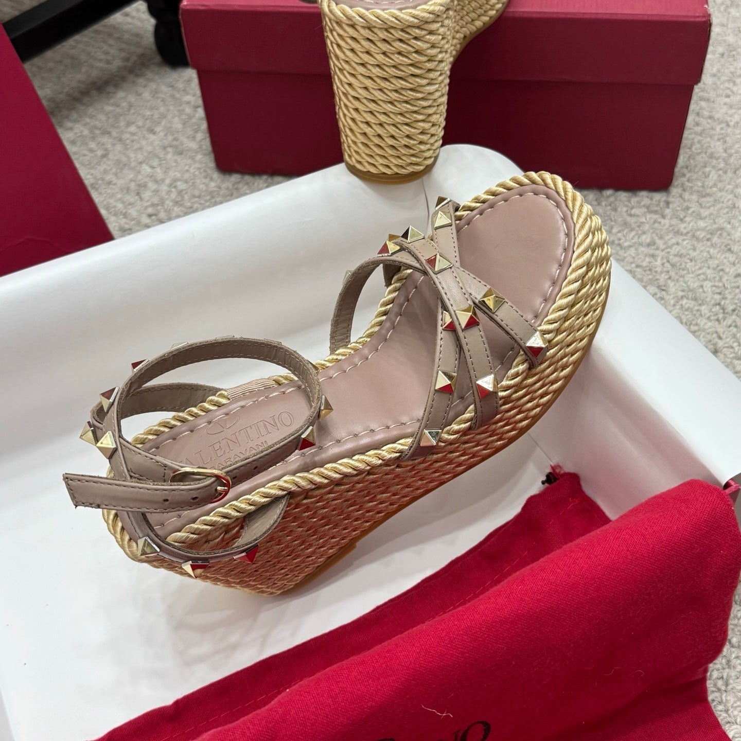 VLTN HIGH WEDGE STUDDED SANDALS 25S 100 MM IN SOFT ROSEWOOD BROWN CALFSKIN