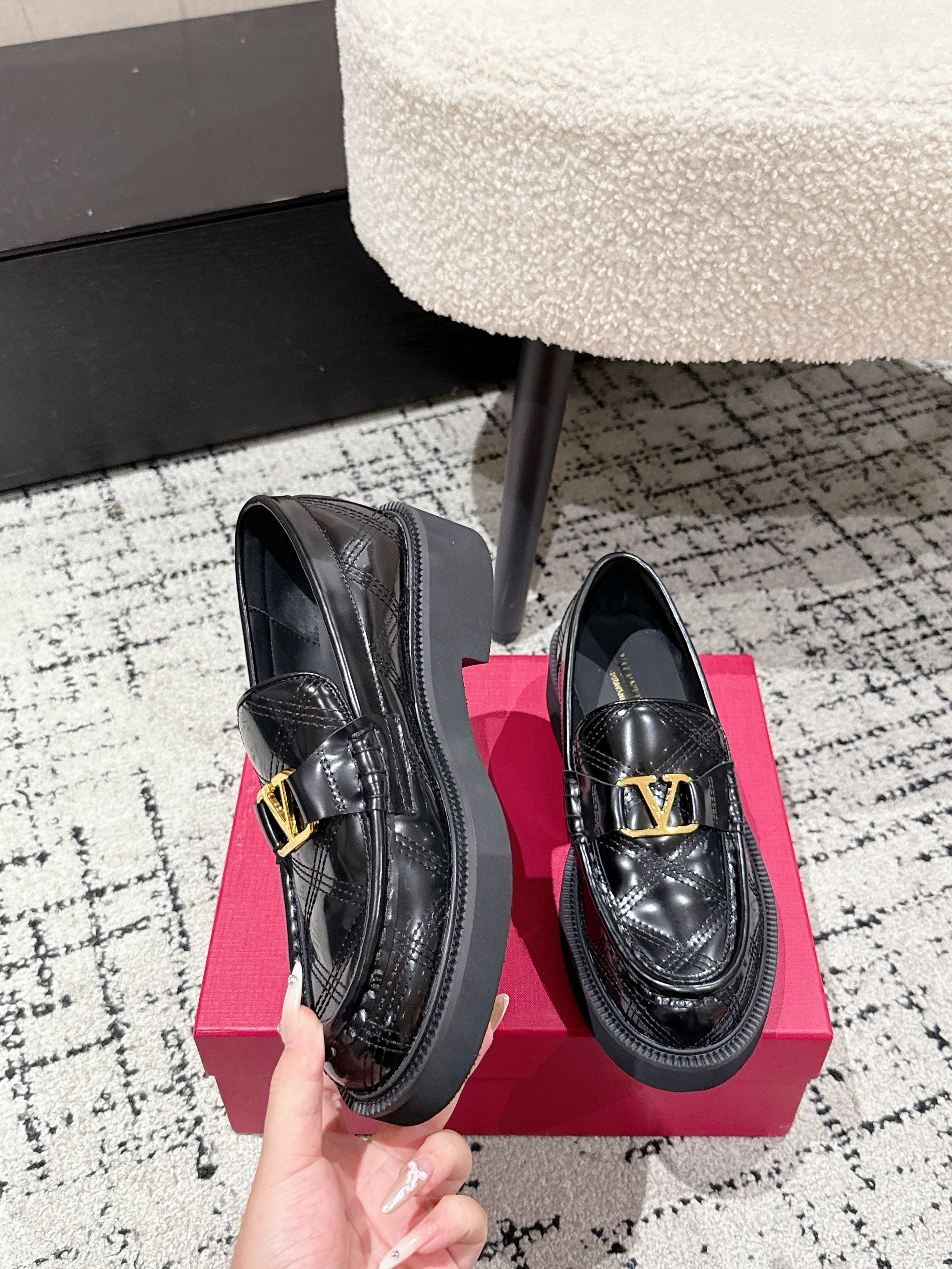 VLTN LOAFER 25S IN BLACK CALFSKIN WITH GOLD HARDWARE
