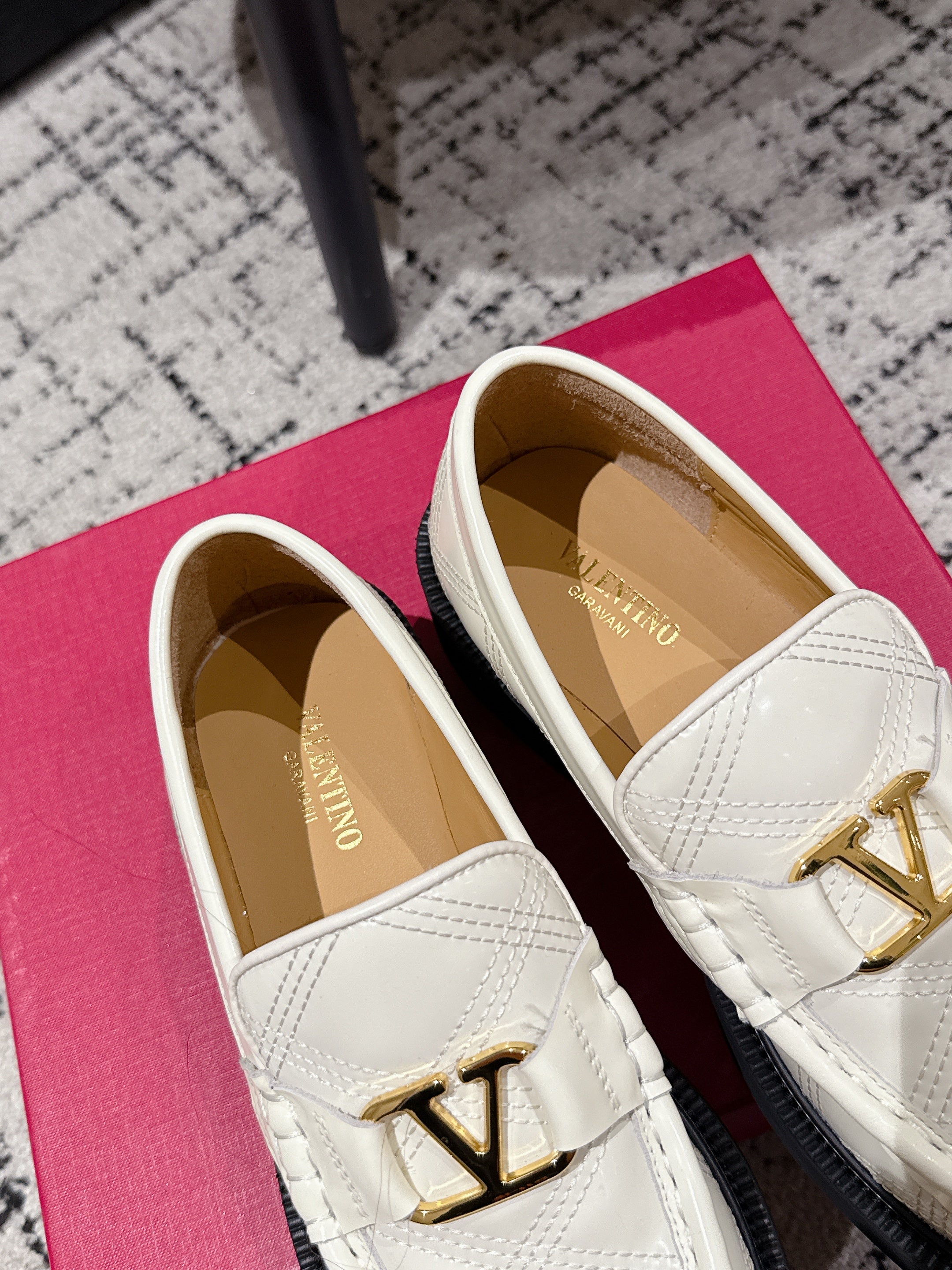 VLTN LOAFER 25S IN CREAM WHITE CALFSKIN WITH GOLD HARDWARE