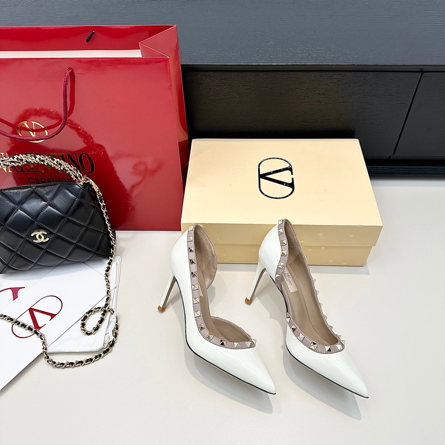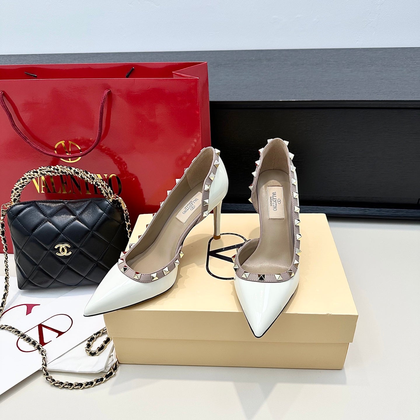 VLTN ROCKSTUD HEELS 25S 85 MM IN WHITE GLOSSY LEATHER