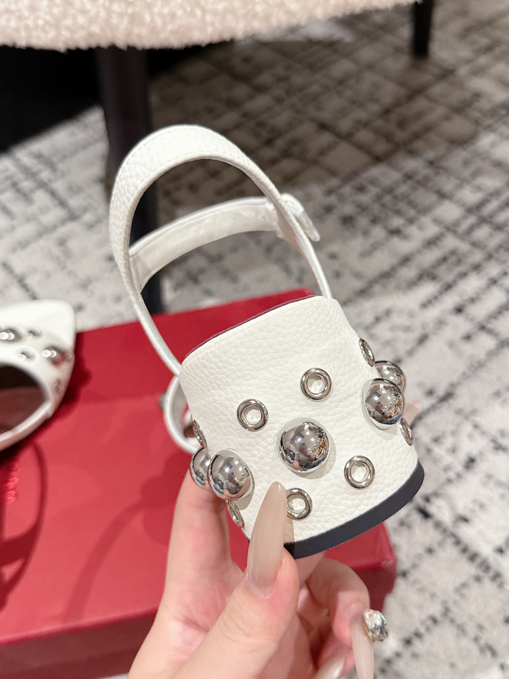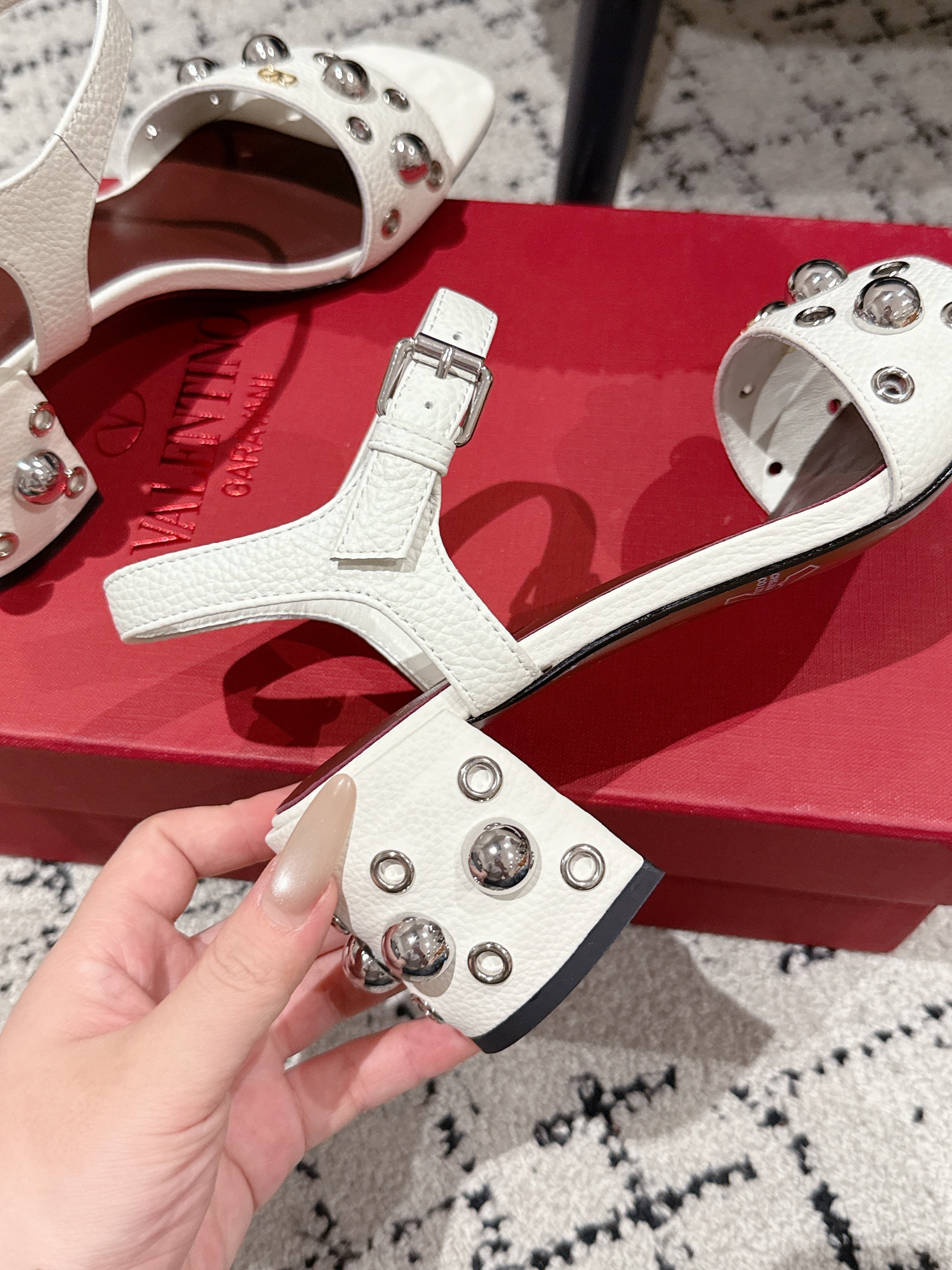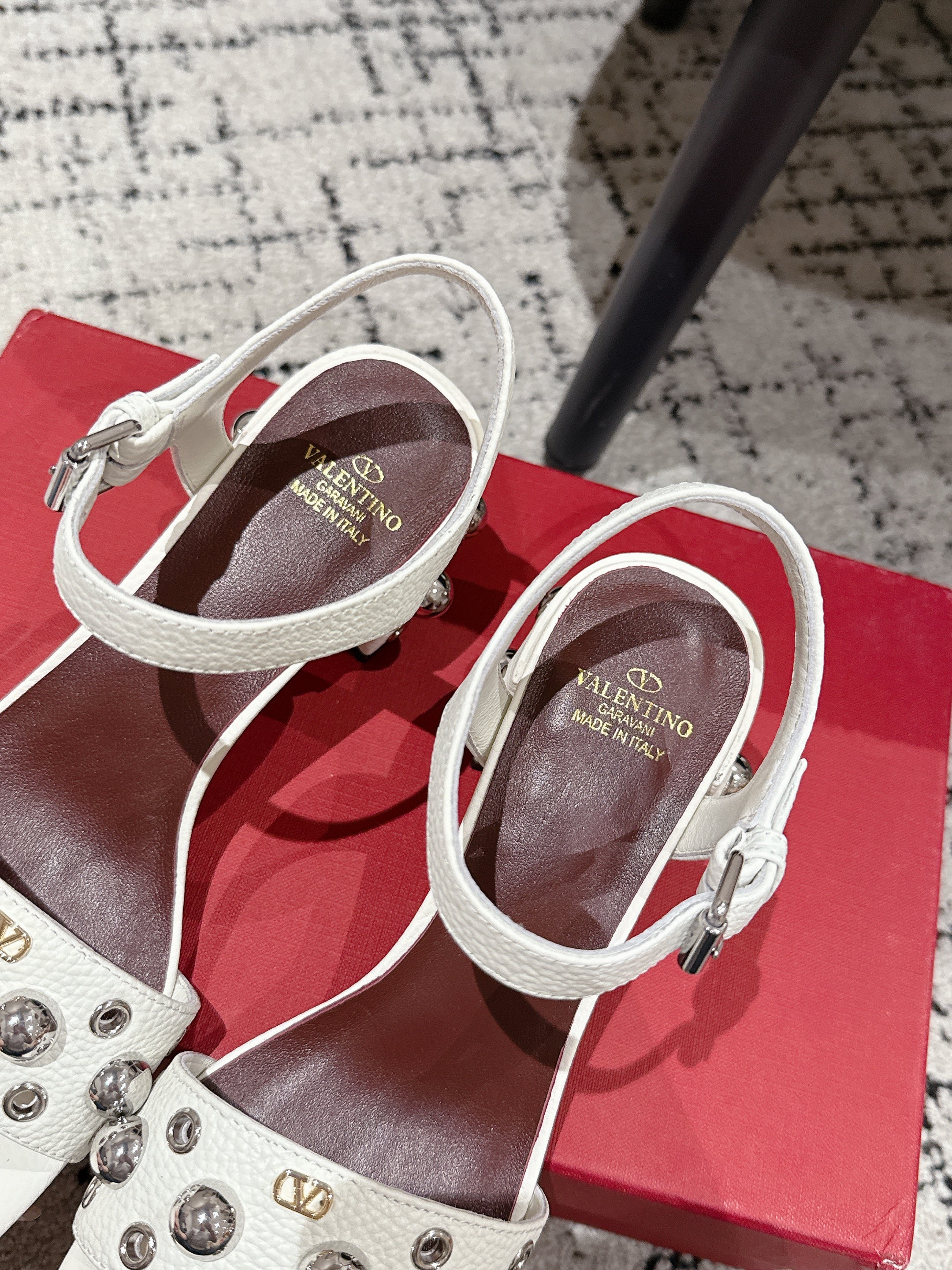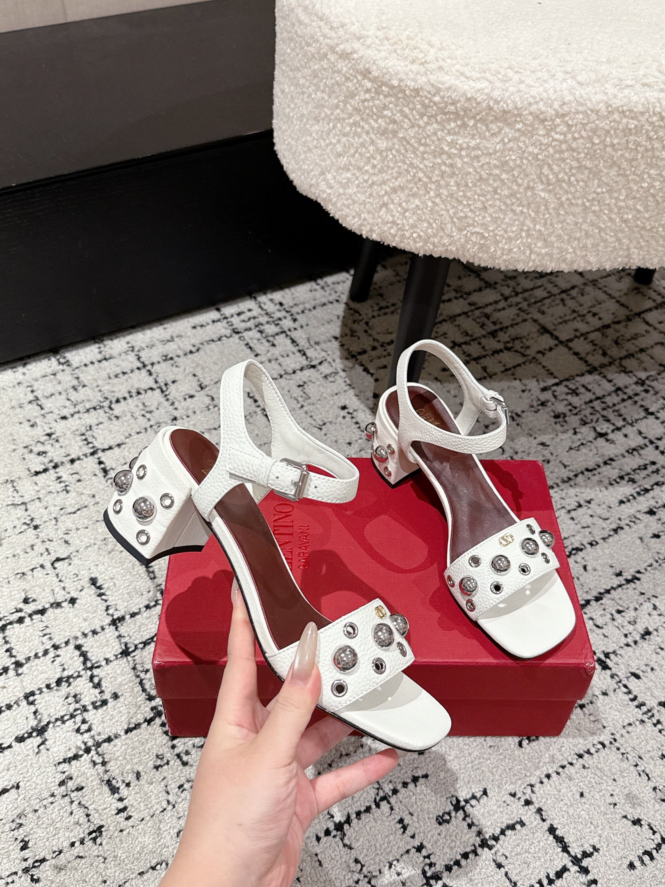 VLTN STUDDED BLOCK HEEL SANDALS 25S 60 MM IN WHITE LAMBSKIN