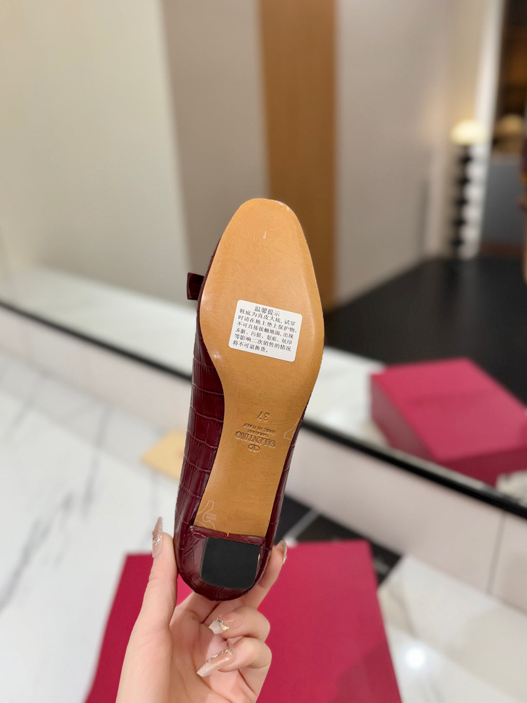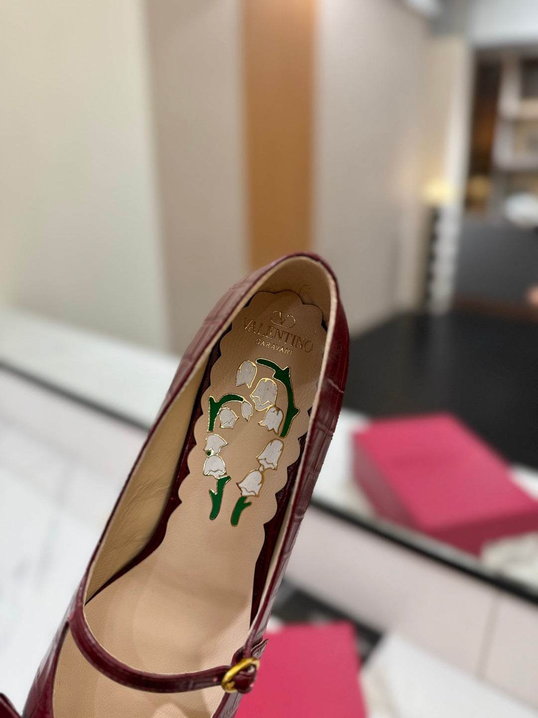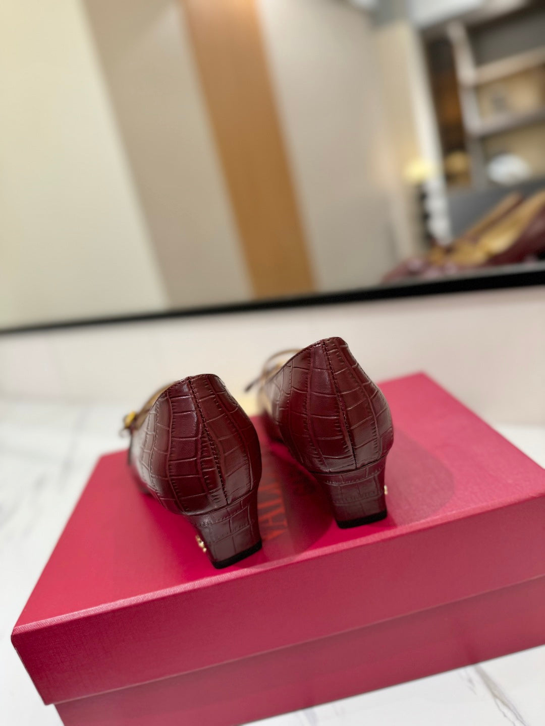VLTN VLOGO SIGNATURE ROUND-TOE HEELS 25S IN DARK RED LAMBSKIN SNAKE-EMBOSSED