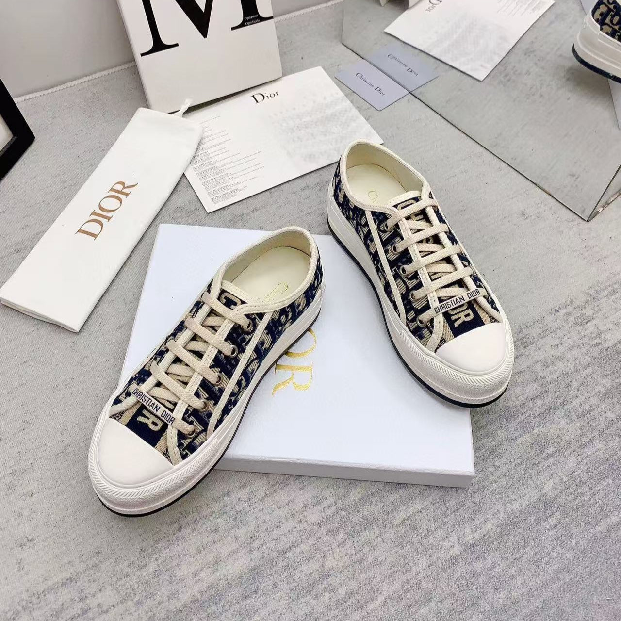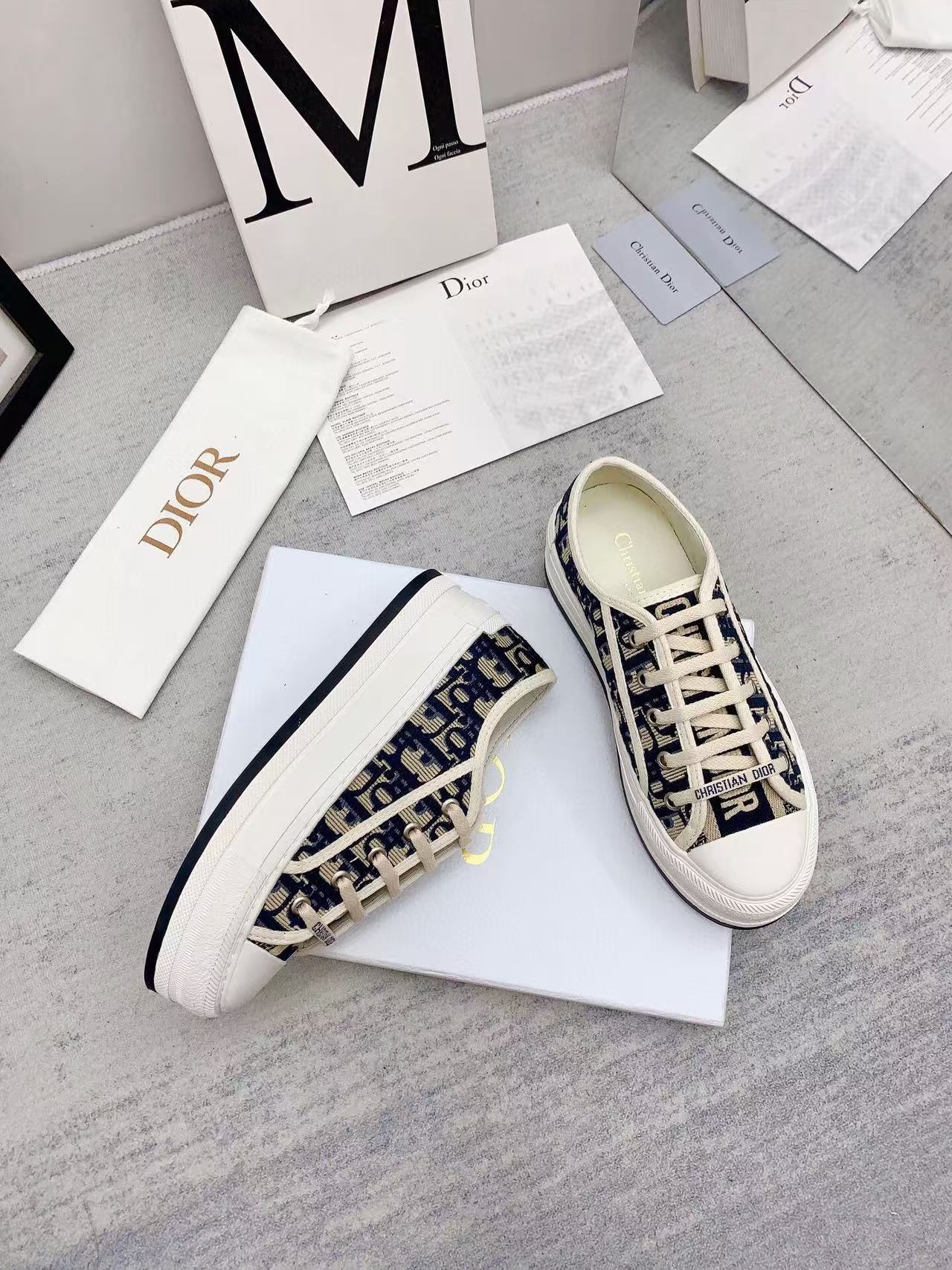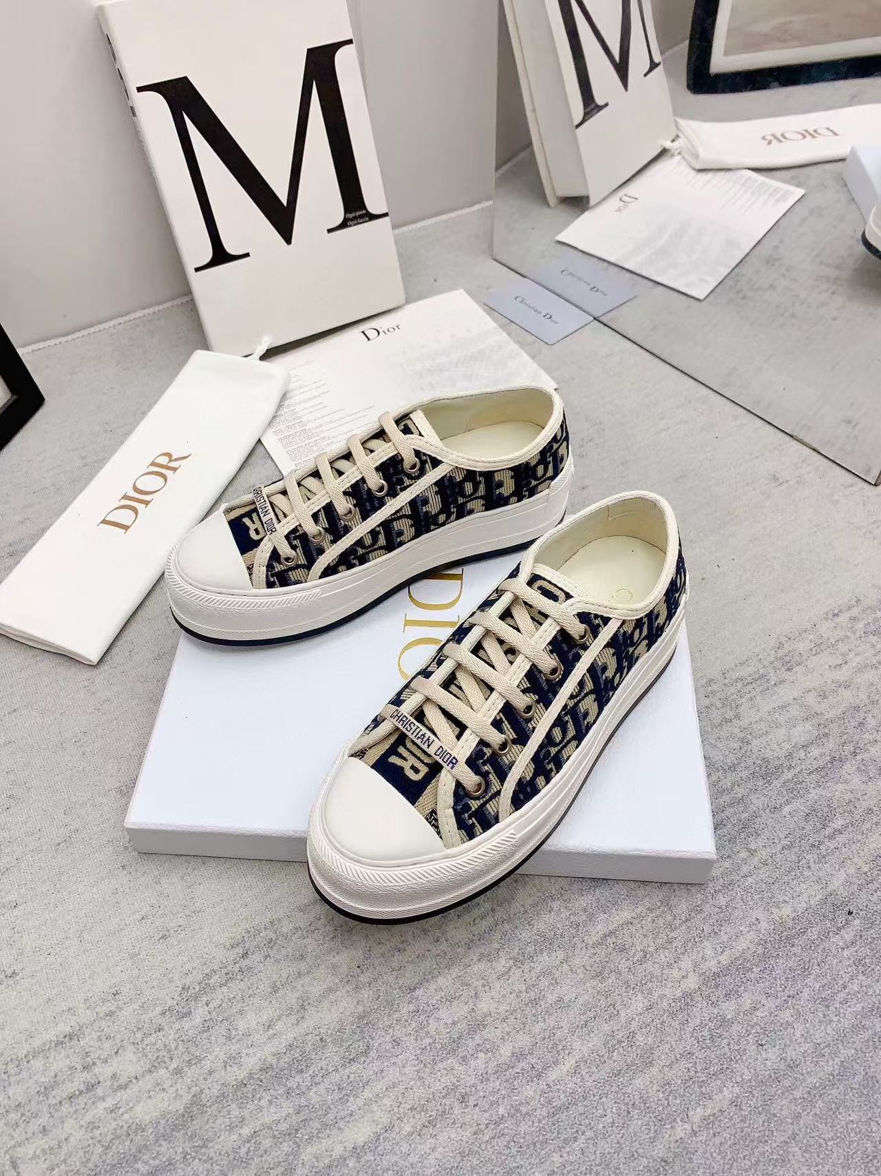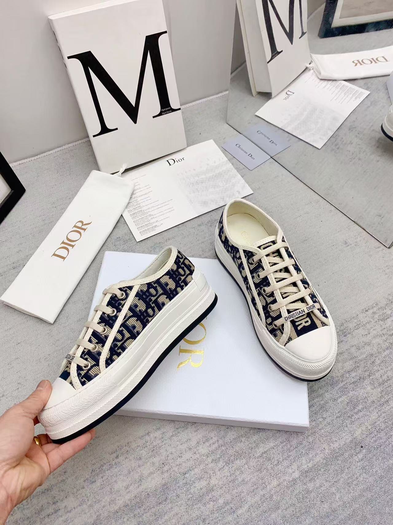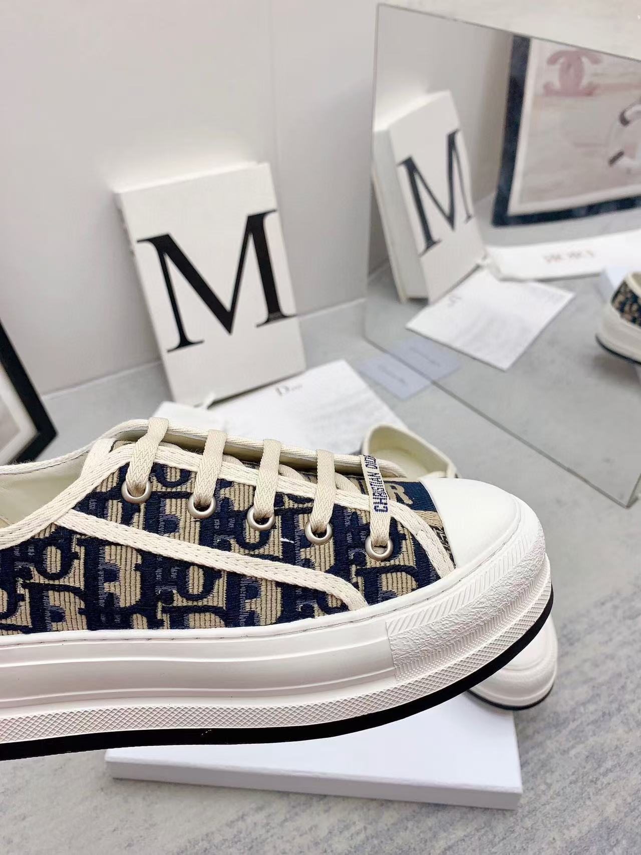 WALKN 45 BEIGE BLUE OBLIQUE EMBROI-DERY CANVAS