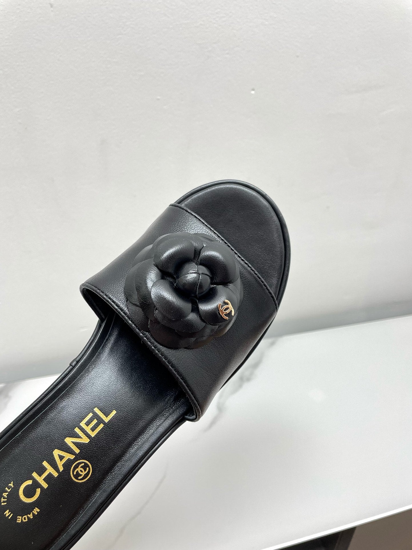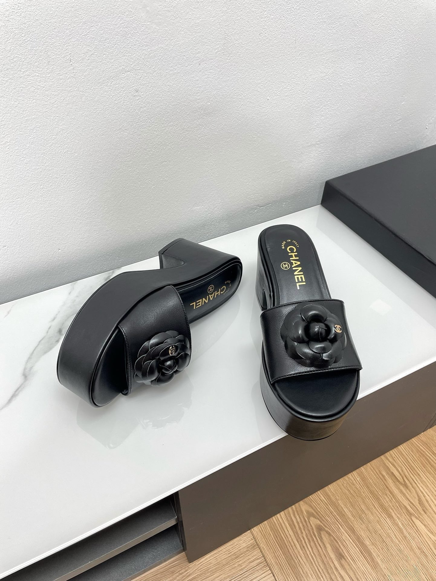 WEDGE PLATFORM BLACK LAMBSKIN WITH FLOWER