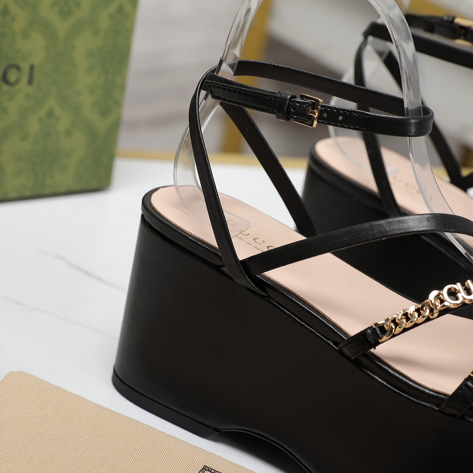 WEDGE PLATFORM IN BLACK SHEEPSKIN