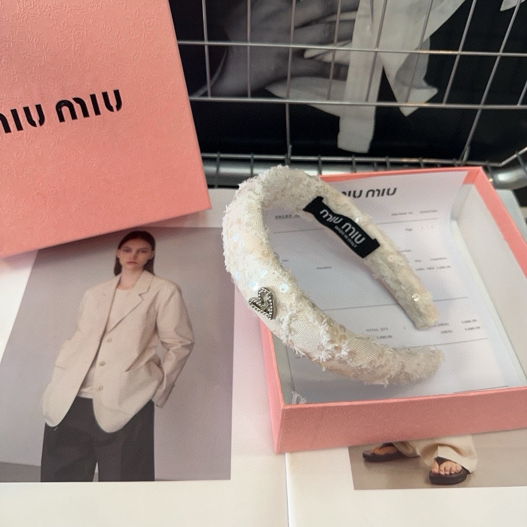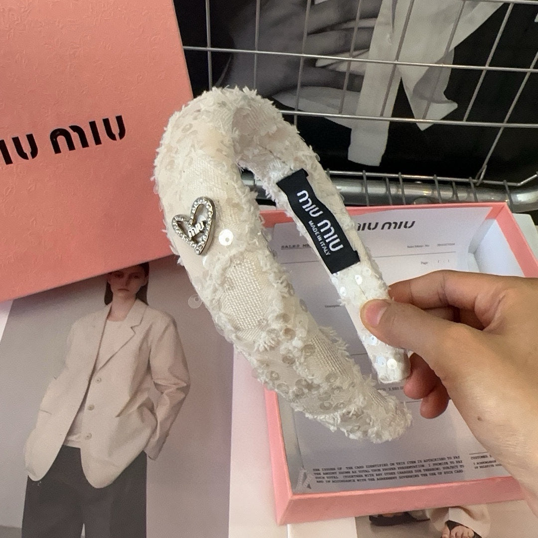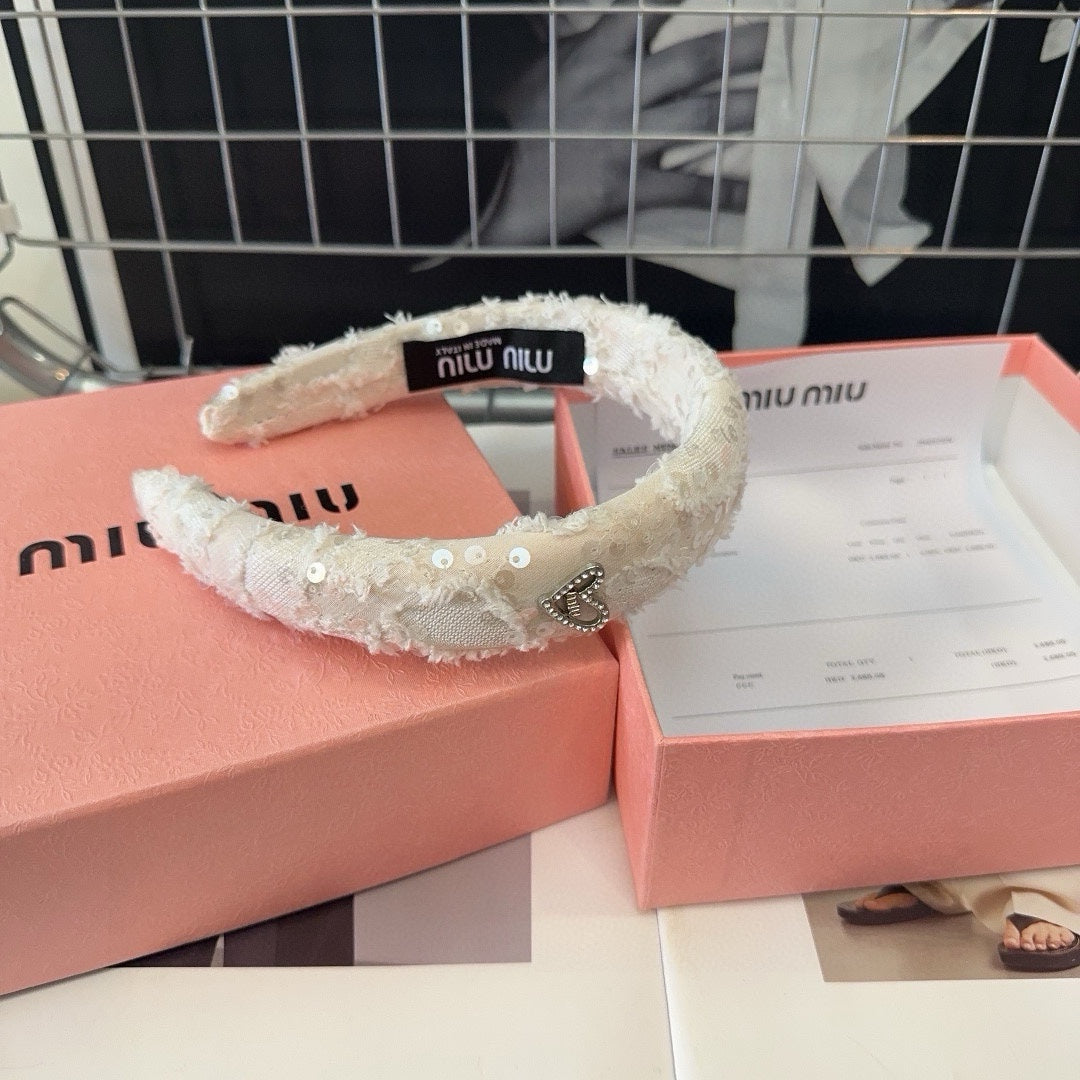 WHITE HEADBAND ATTACHED SEQUINS TWEED 393654