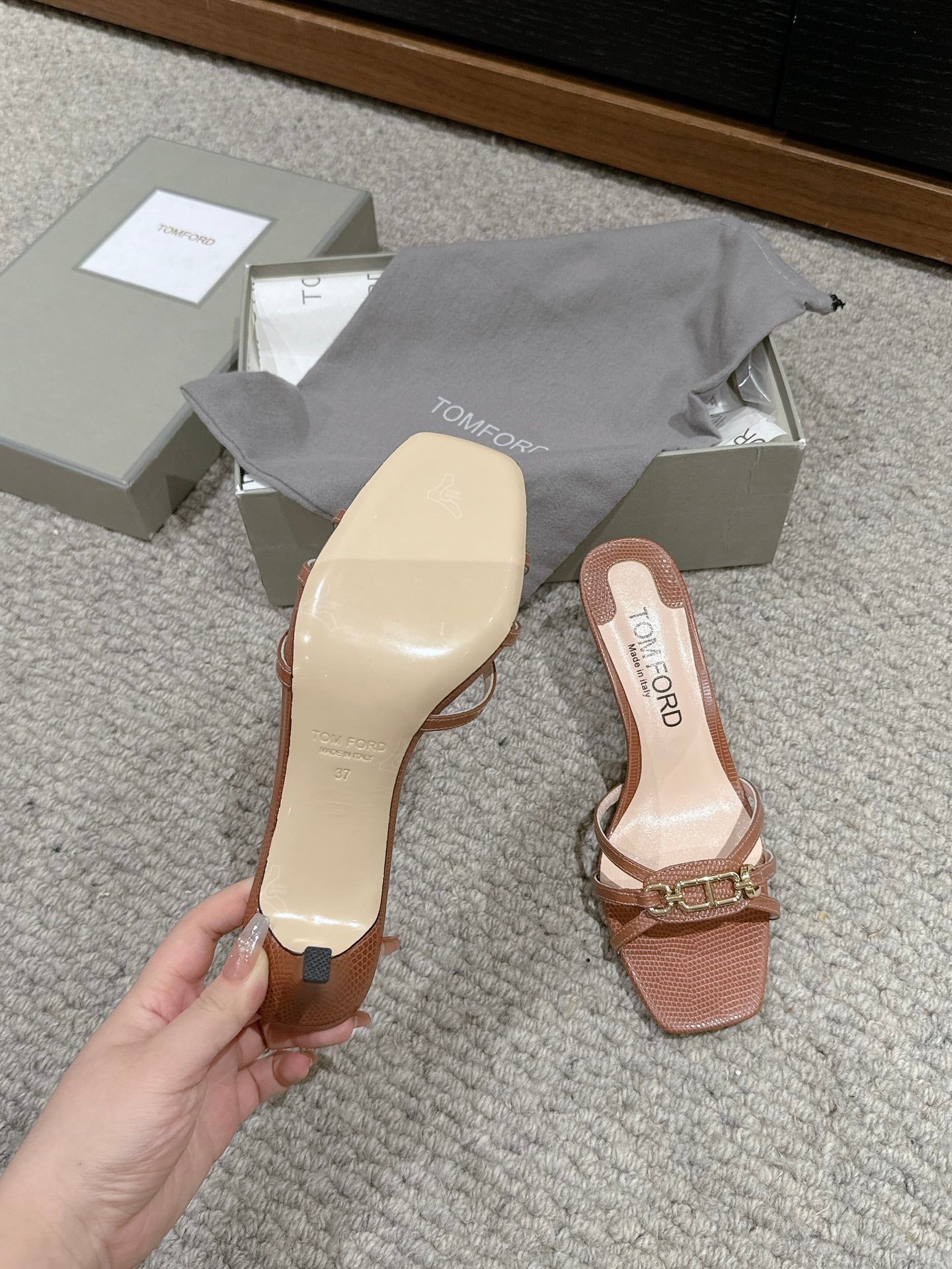 WHITNEY HIGH 6 CM MULE IN RED BROWN CROCODILE LEATHER