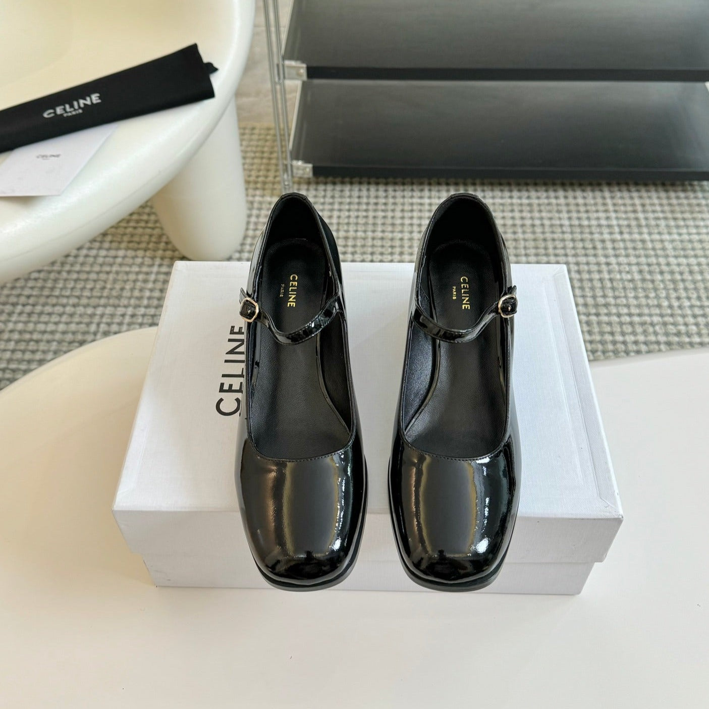 WOMEN'S HIGH HEELS WITH ROUND TOE GLOSSY BLACK SPECIFIC COWHIDE