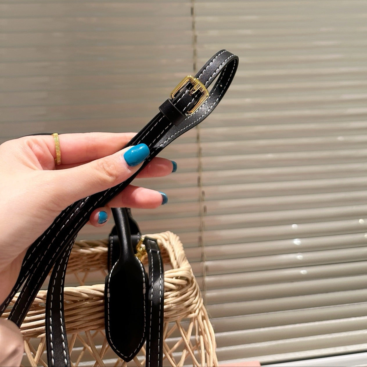 WOVEN HOLLOW BAG 23 IN BEIGE RATTAN AND BLACK CALFSKIN TRIM