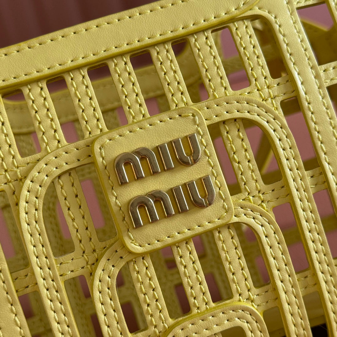 WOVEN HOLLOW BAG 24 IN LEMON YELLOW CALFSKIN