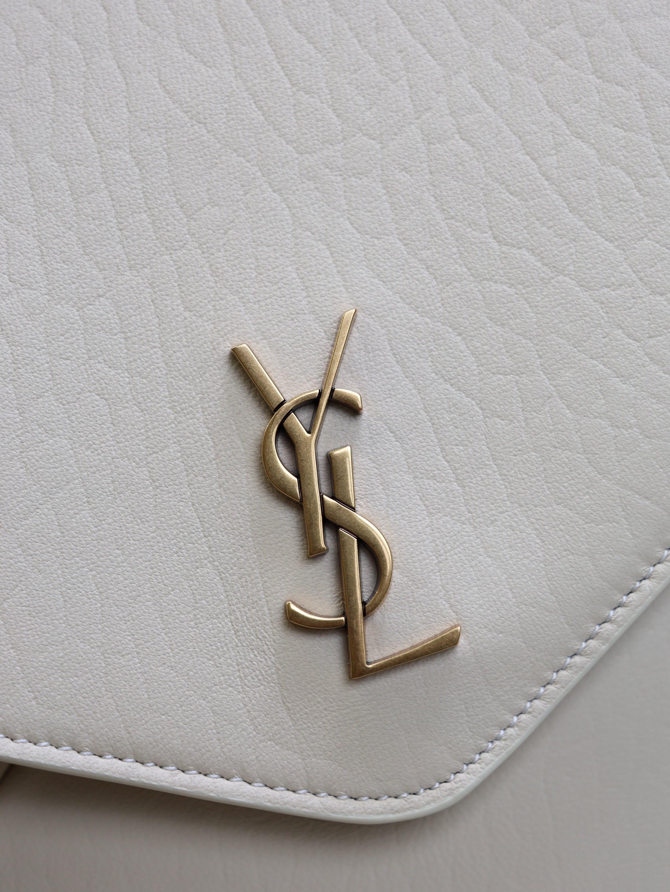 YSL 25S CASSANDRE ENVELOPE MESSENGER 35 IN BLANC VINTAGE LAMBSKIN GOLD HARDWRE