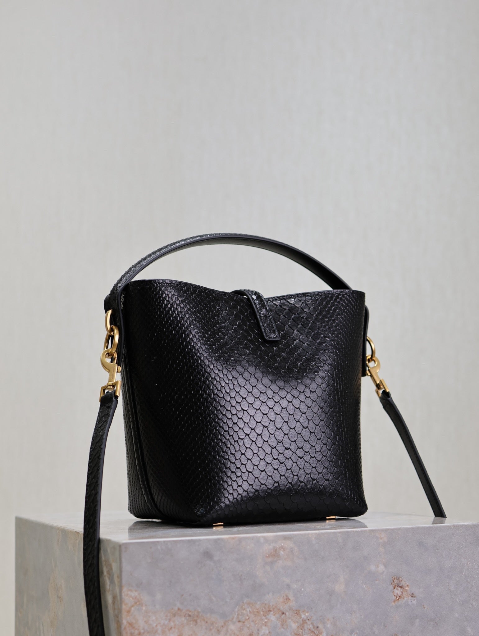 YSL 25S LE 37 20 IN BLACK SNAKE EMBOSSED CALFSKIN GOLD HARDWRE