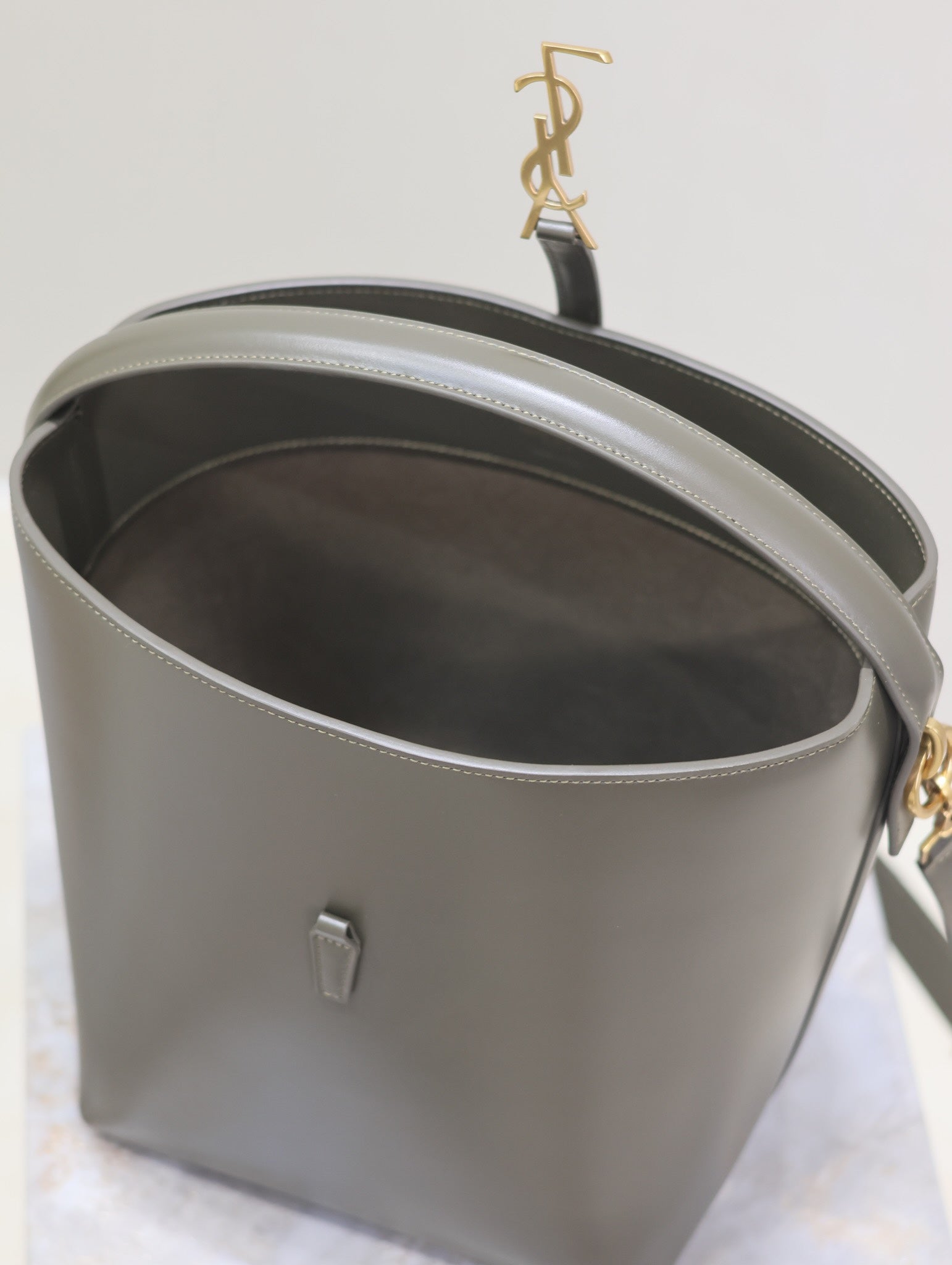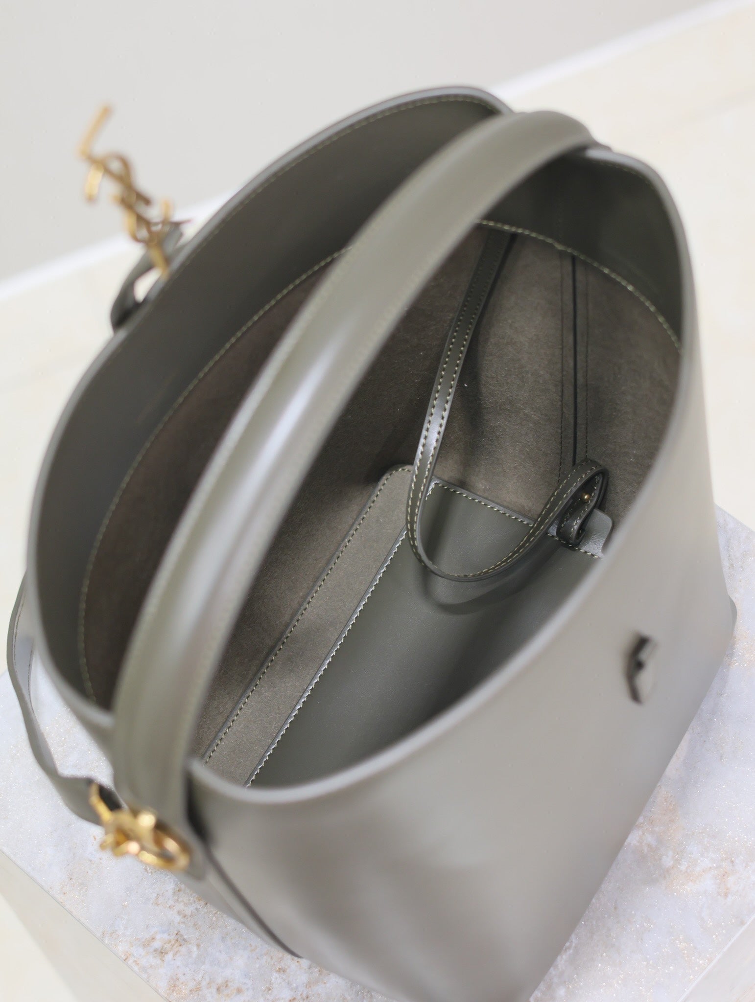 YSL 25S LE 5 À 7 BUCKET 26 IN DARK OLIVE CALFSKIN GOLD HARDWRE