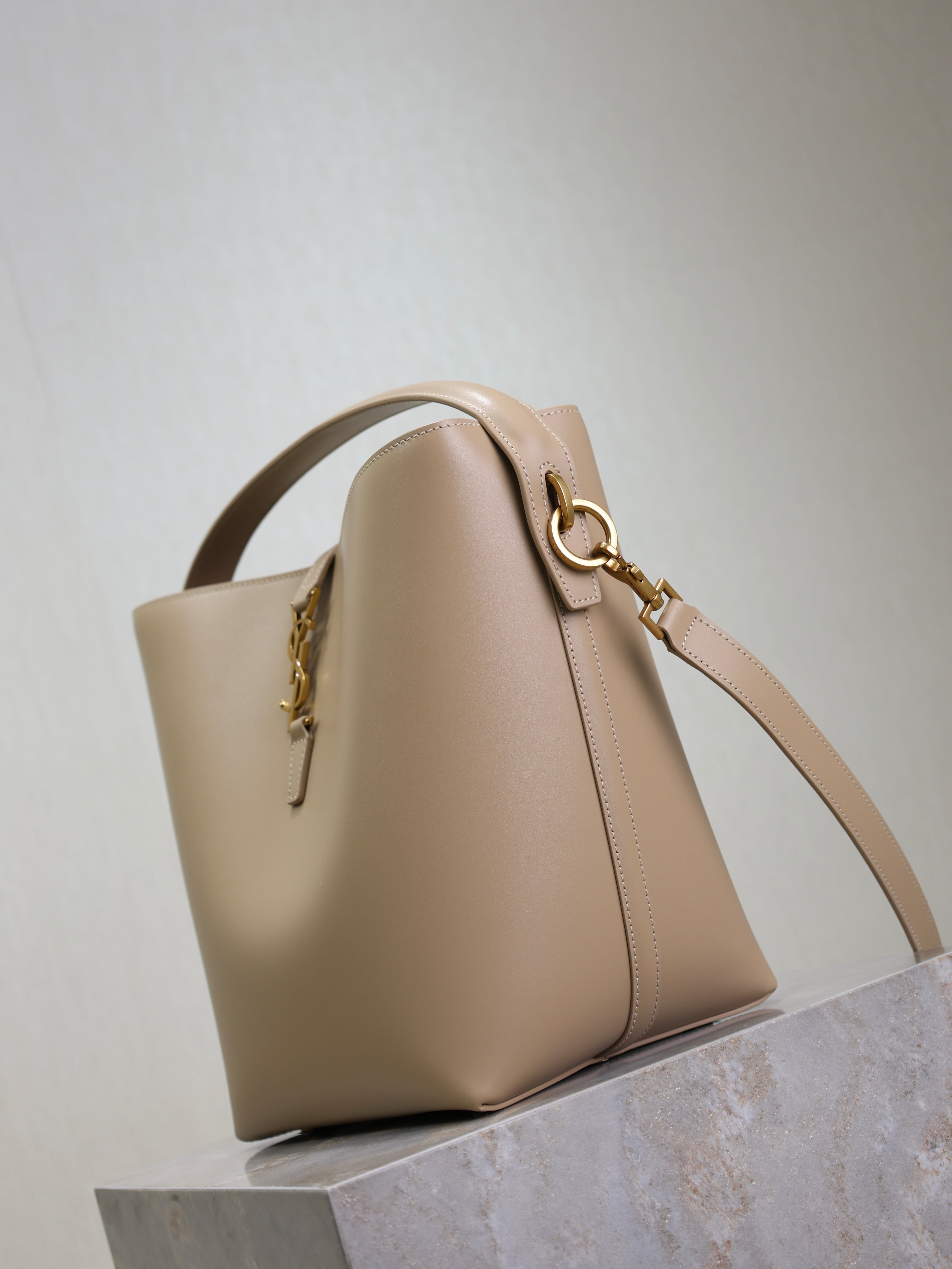 YSL 25S LE 5 À 7 BUCKET 26 IN NUDE CALFSKIN GOLD HARDWRE