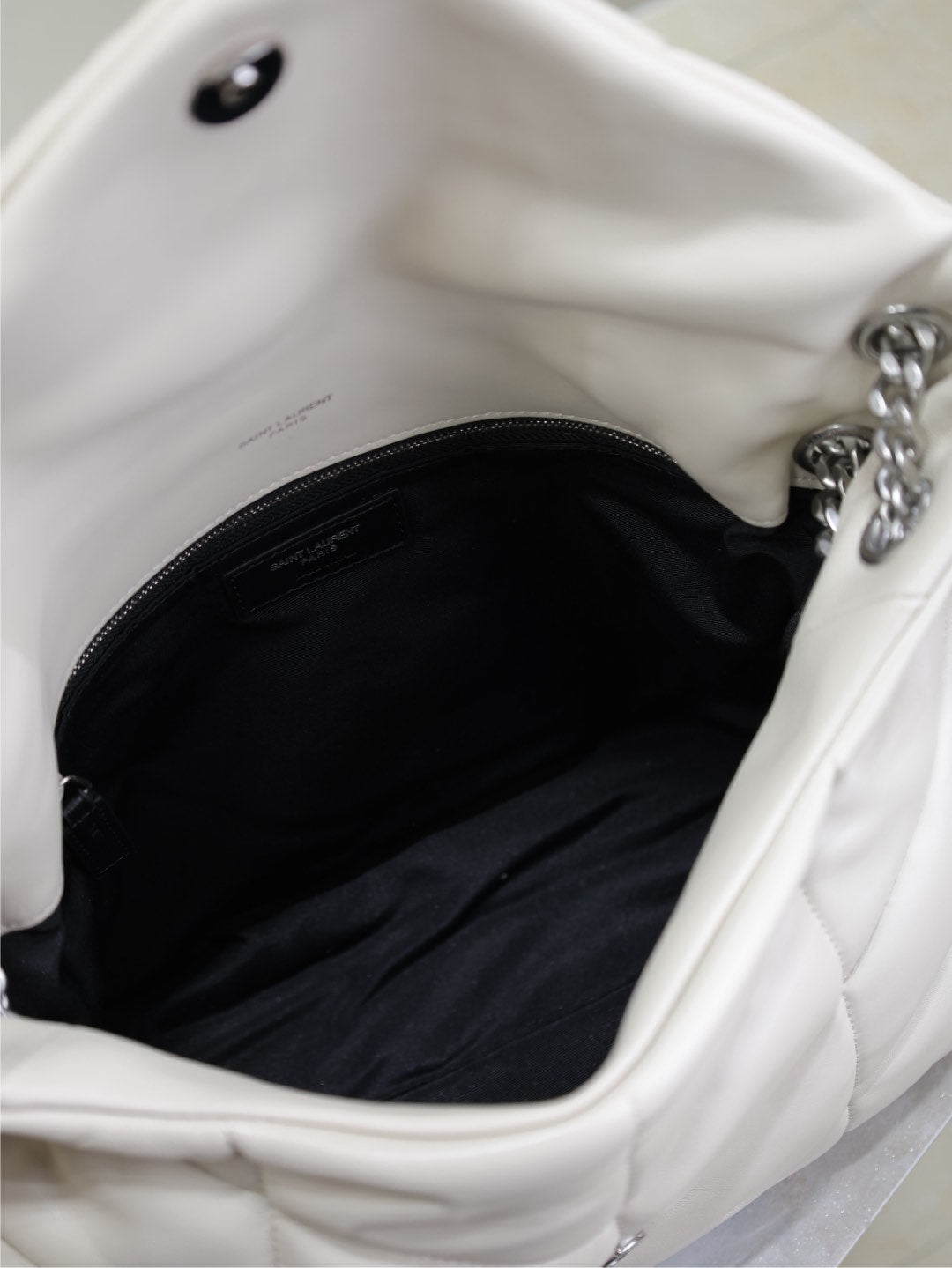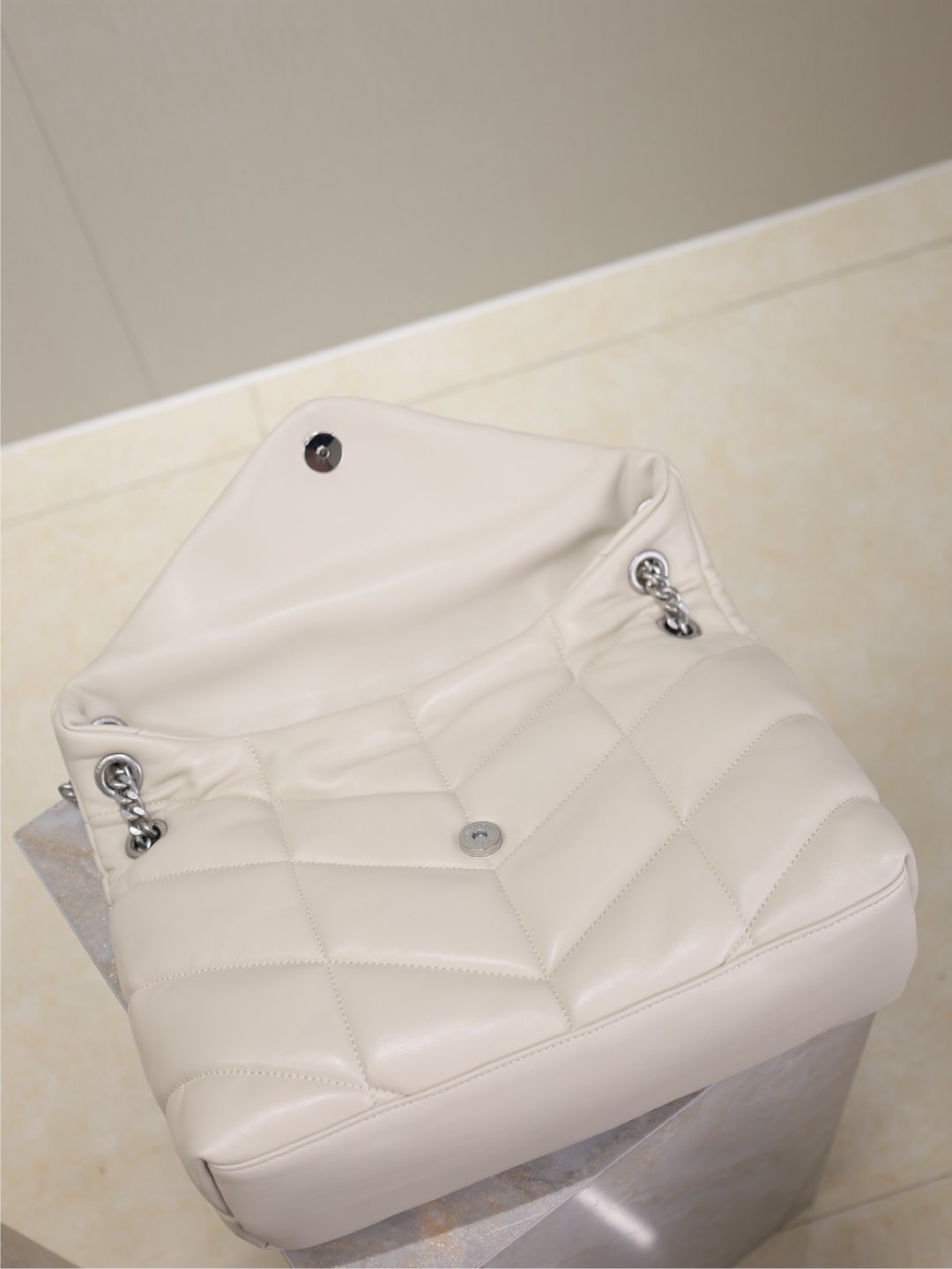 YSL 25S LOULOU PUFFER GM 35 IN SMOKEY TAUPE CALFSKIN SILVER HARDWRE