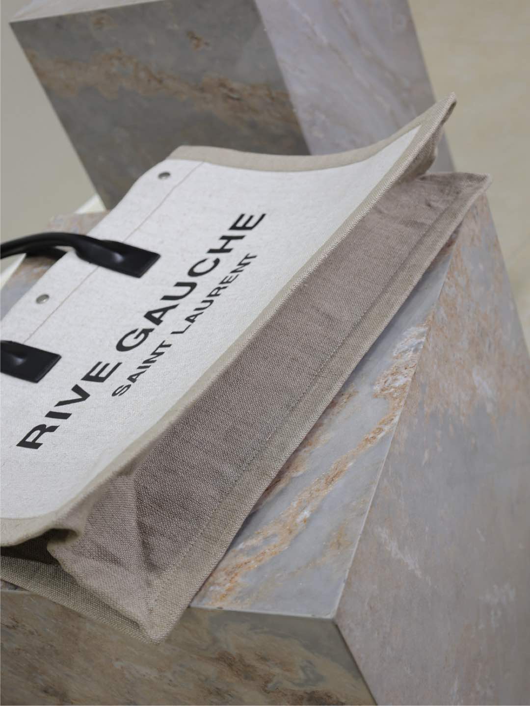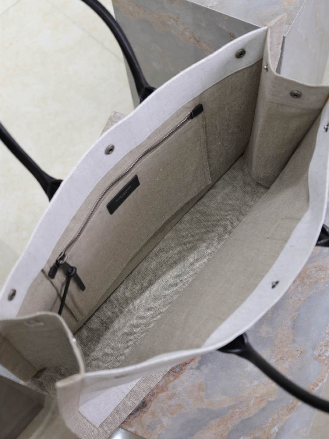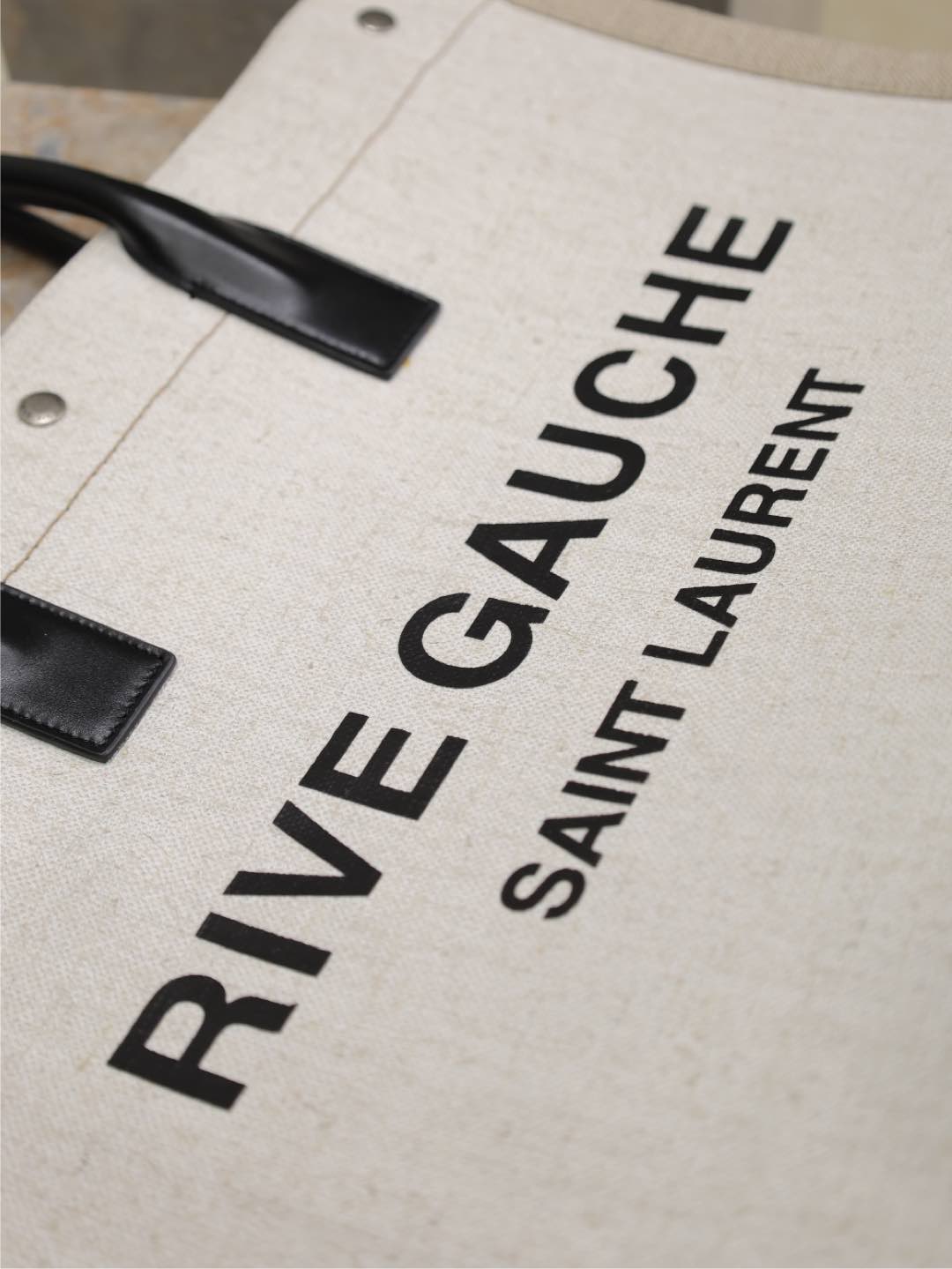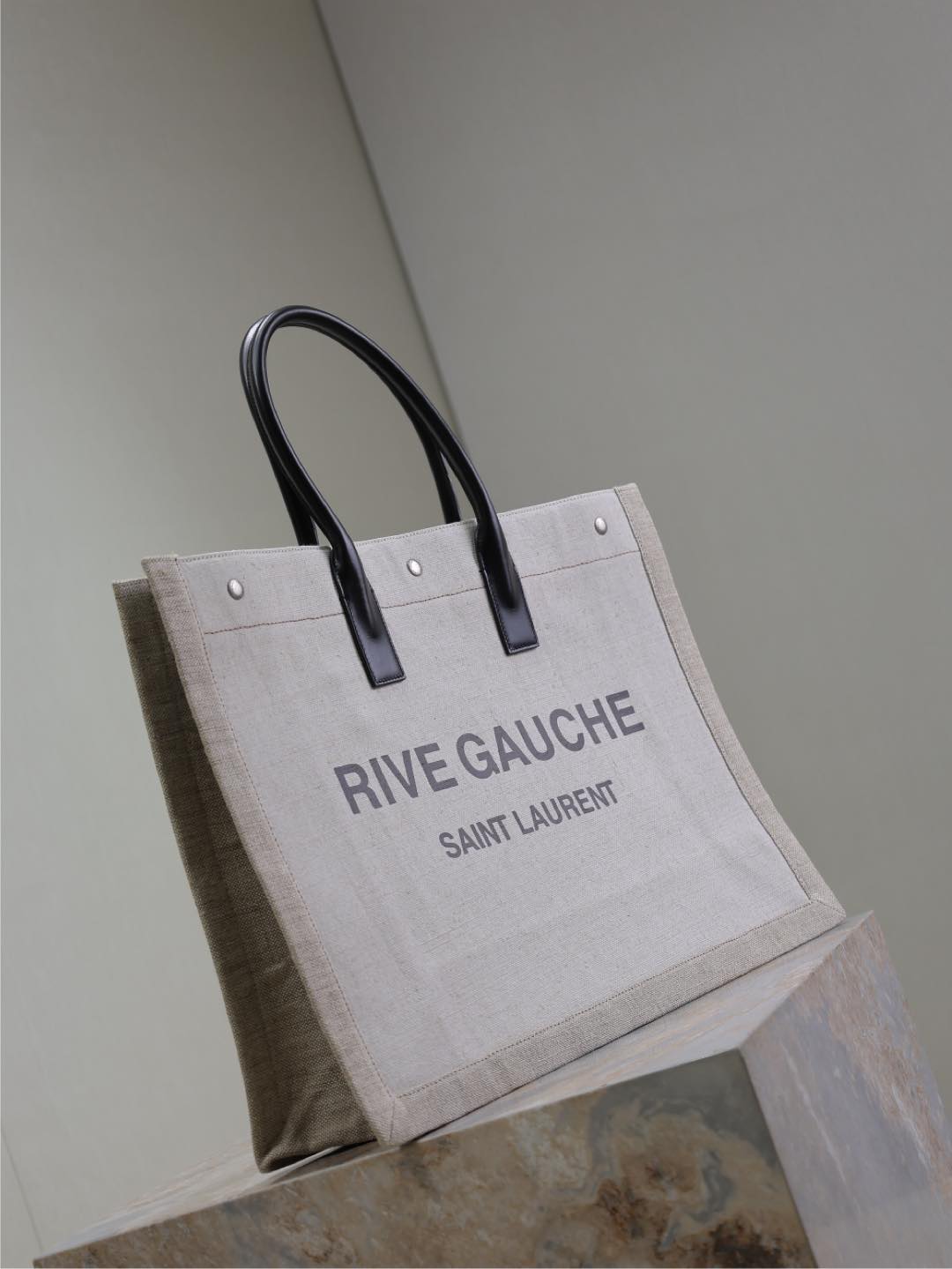 YSL 25S RIVE GAUCHE TOTE BAG 48 IN DUSTY GRAY CANVAS