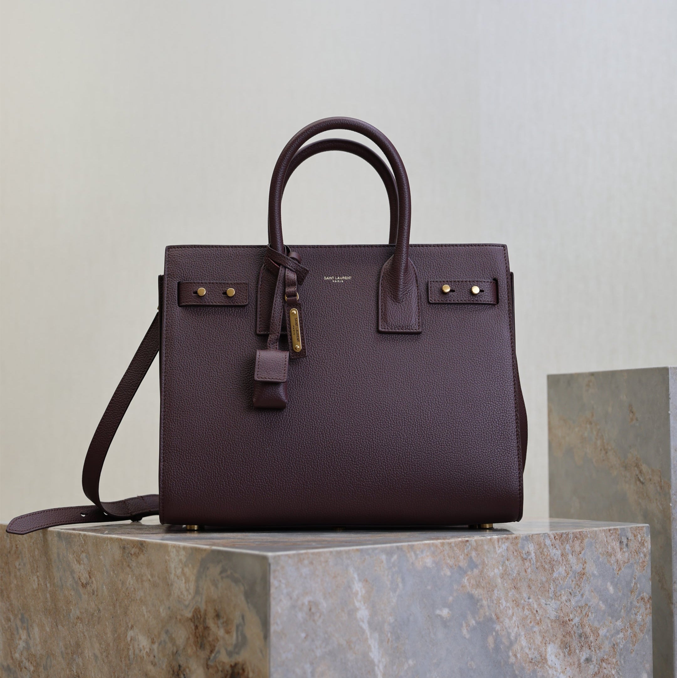 YSL 25S SAC DE JOUR GM 32 IN ROUGE CABERNET SUPPLE GRAINED CALFSKIN