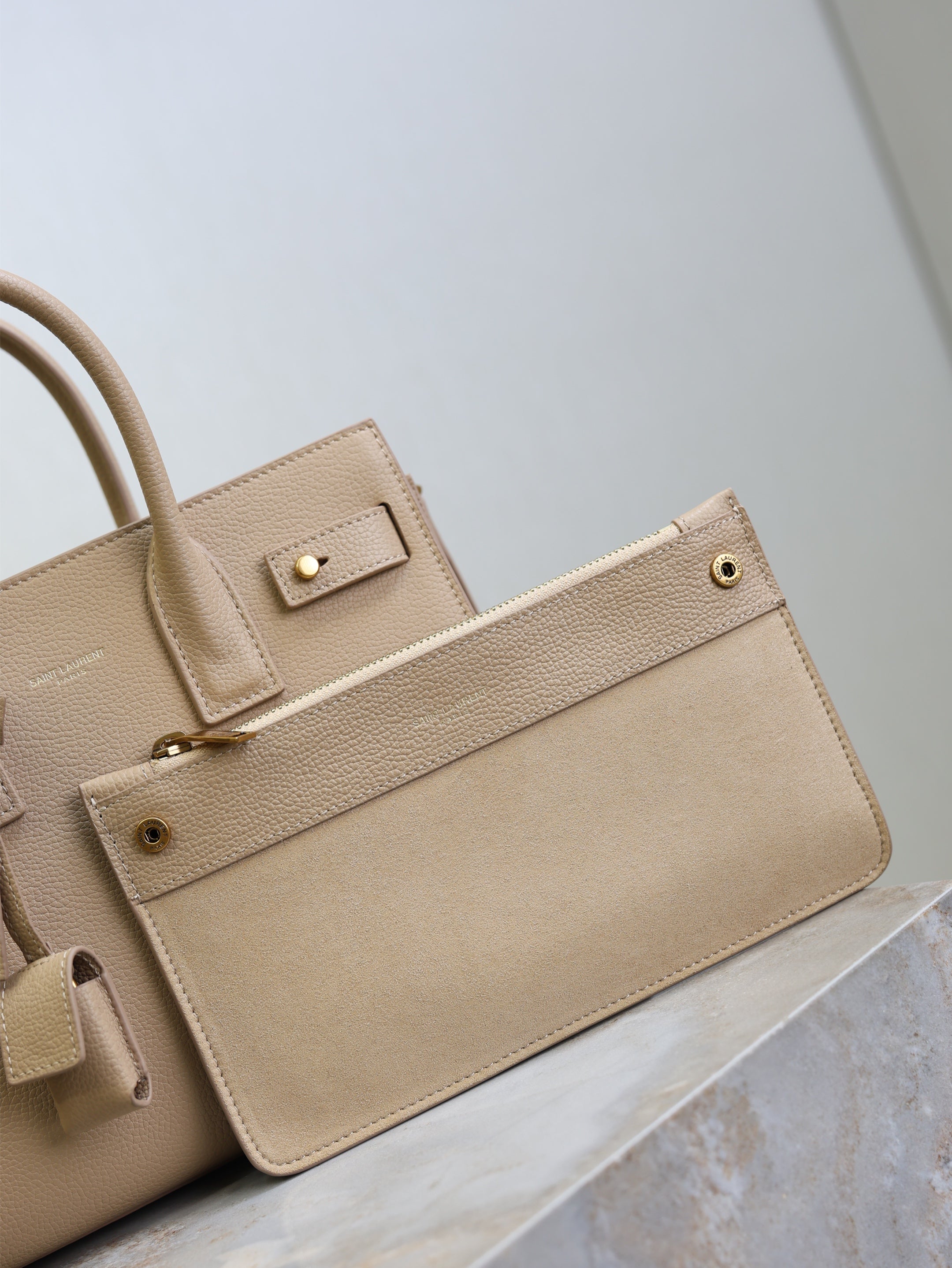 YSL 25S SAC DE JOUR MM 26 IN DARK BEIGE SUPPLE GRAINED CALFSKIN