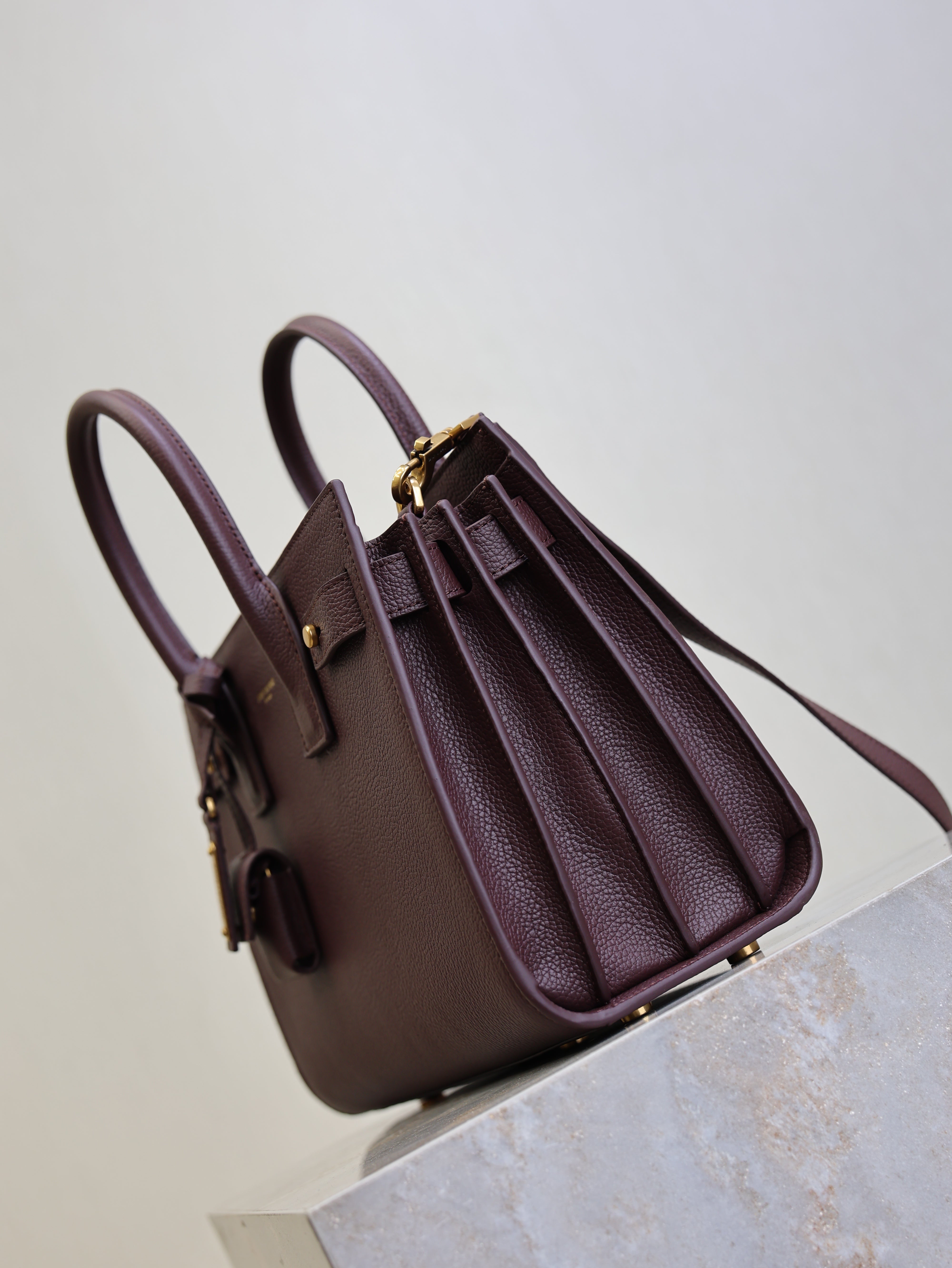 YSL 25S SAC DE JOUR MM 26 IN ROUGE CABERNET SUPPLE GRAINED CALFSKIN