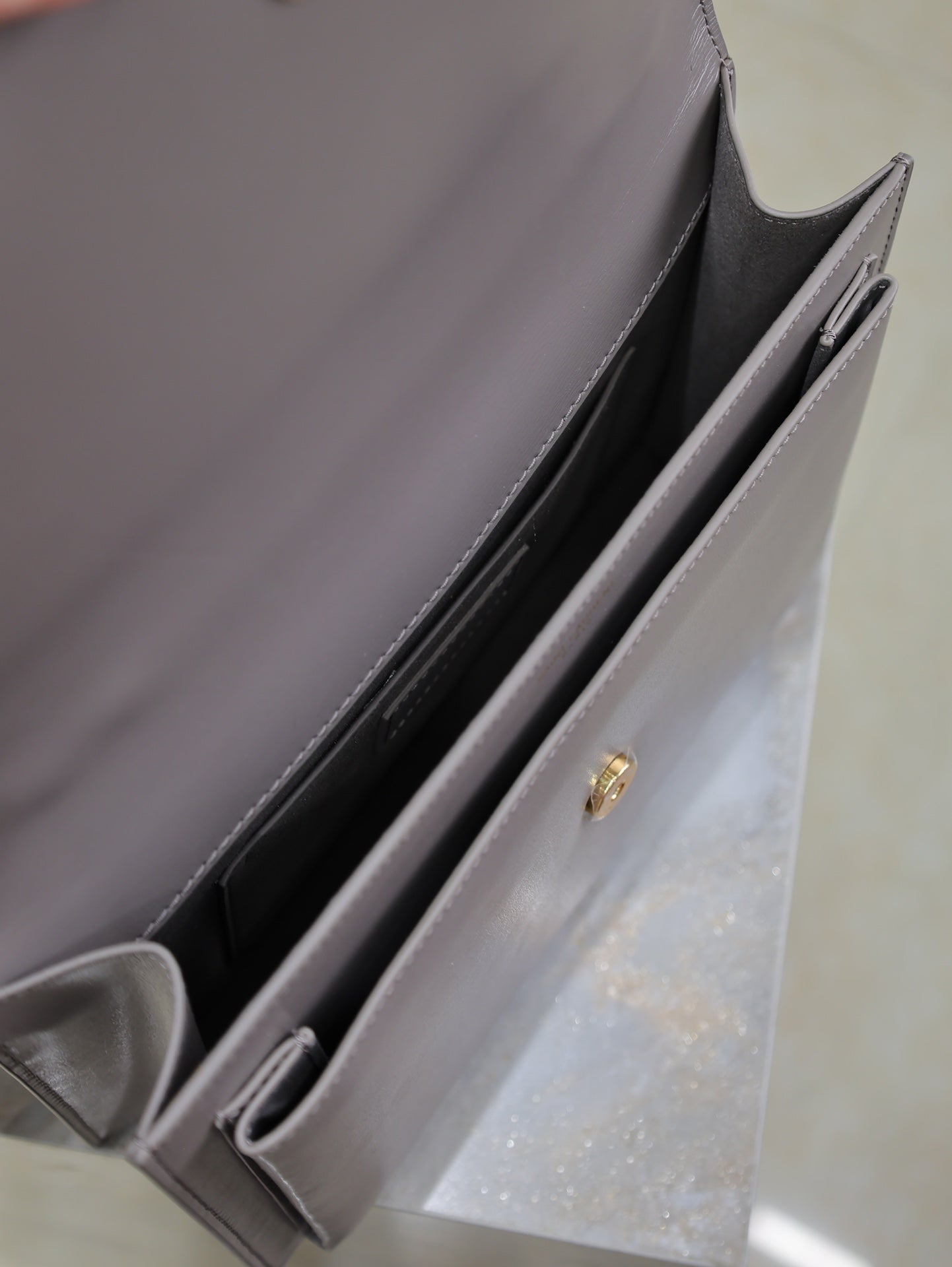 YSL 25S SUNSET MM 25 IN GRAYISH PURPLE CALFSKIN GOLD HARDWRE