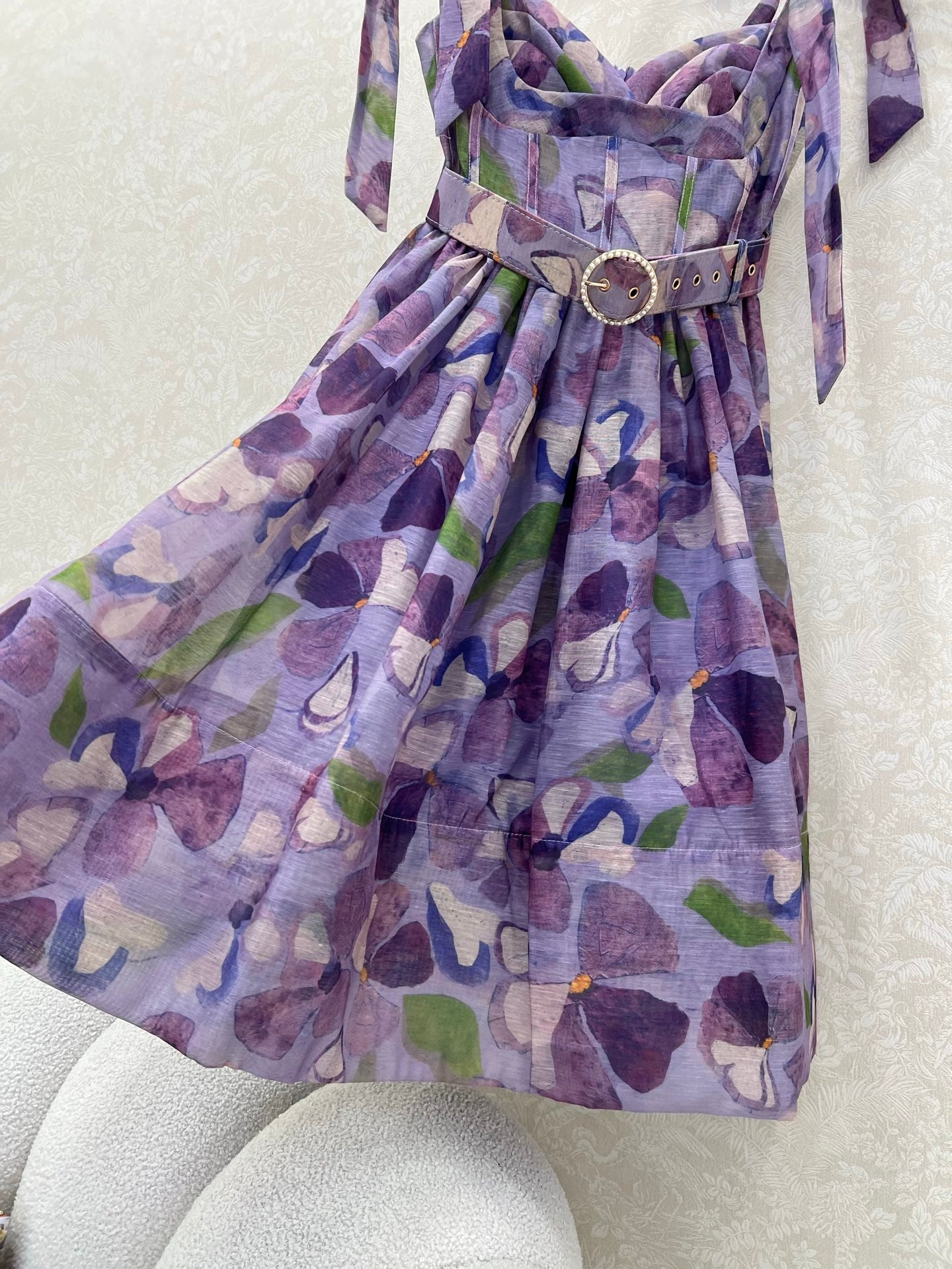 ZIMMERMANN SHORT HERRINGBONE DRESS IN PLUM PURPLE 269377