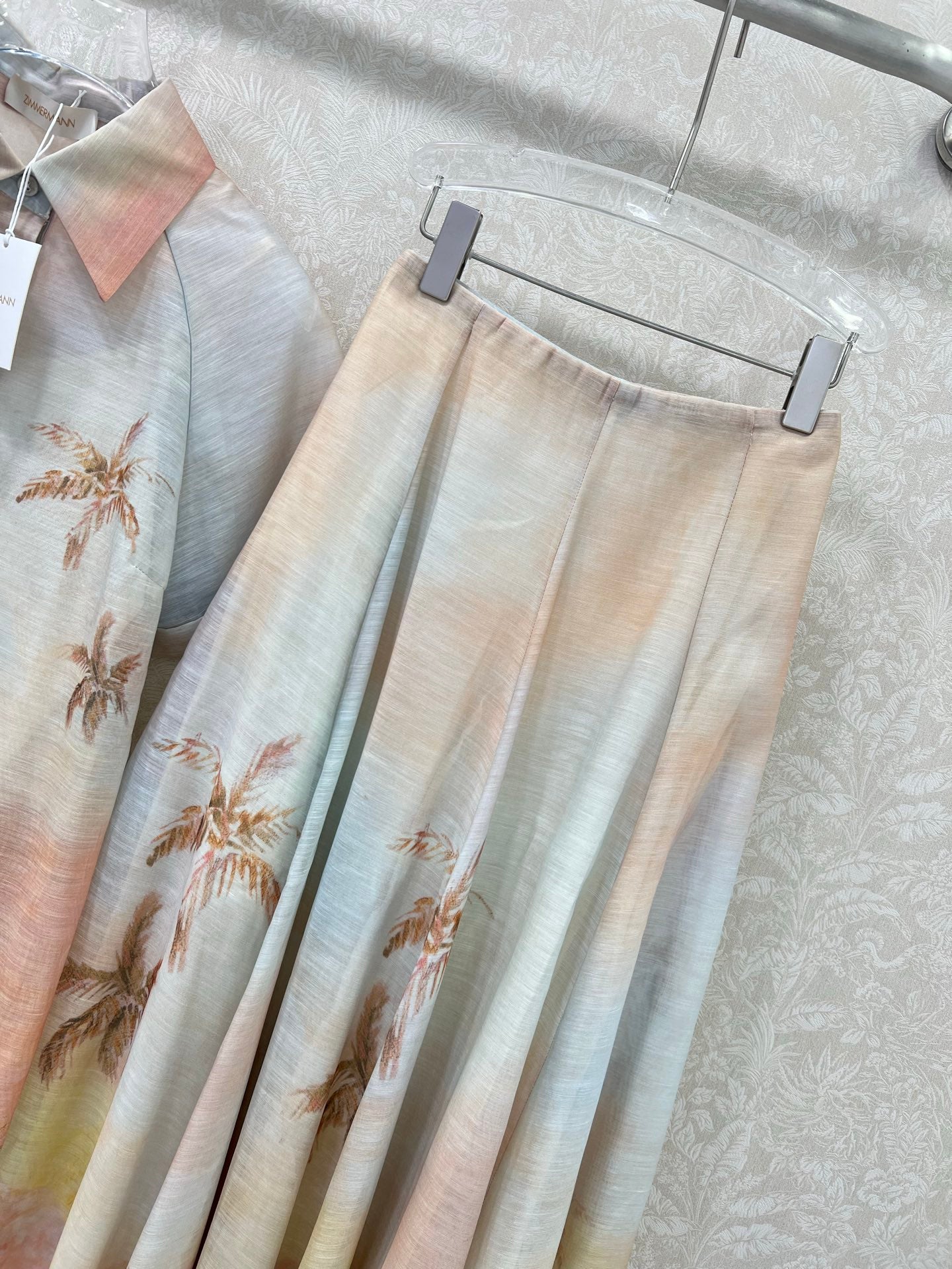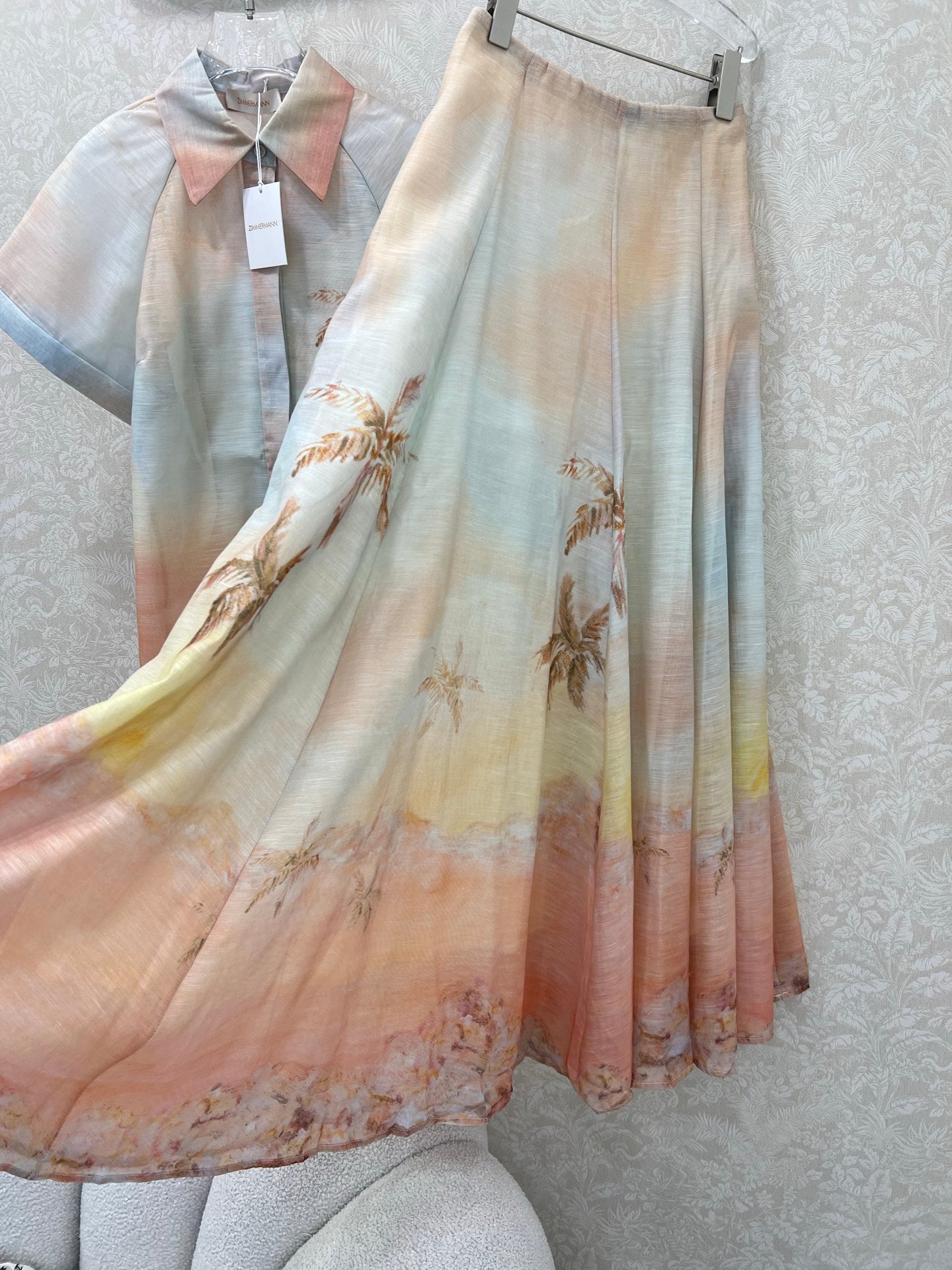 ZIMMERMANN SHORT-SLEEVE SHIRT AND HIGH-WAIST MAXI SKIRT SET 275079
